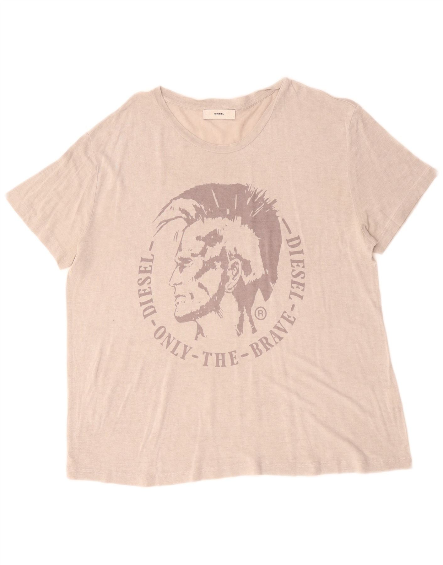 Diesel Dame Grafisk T-Shirt Top UK 18 XL Beige Klassisk