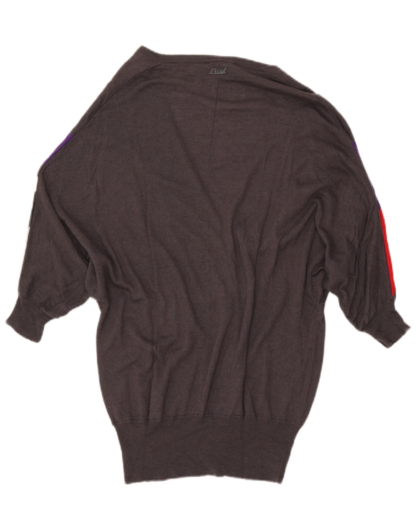 DIESEL Dame Longline Cardigan Sweater UK 10 Small Grey Colourblock
