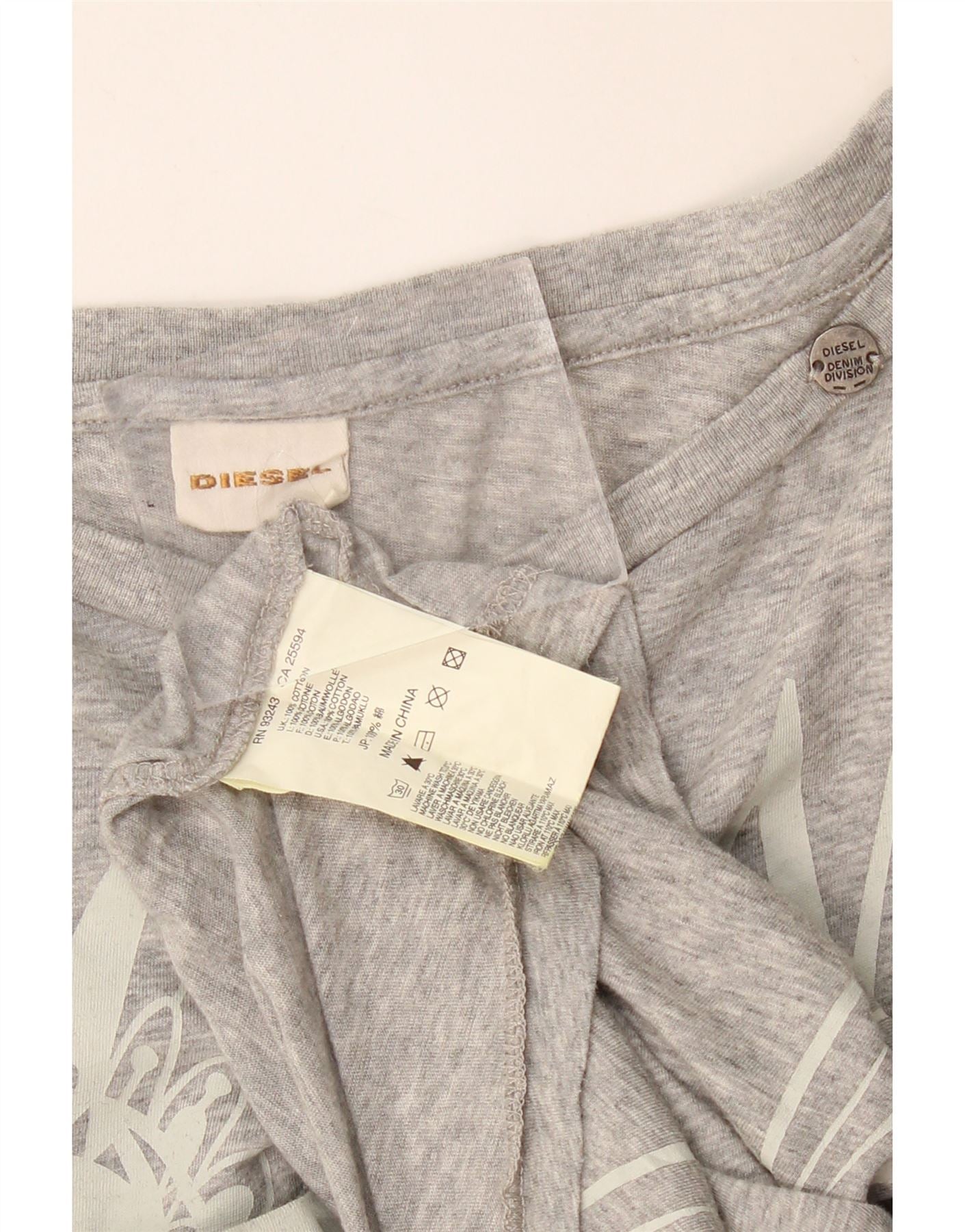 Diesel Dame Oversized grafisk T-shirt Top UK 14 Medium Grå Bomuld