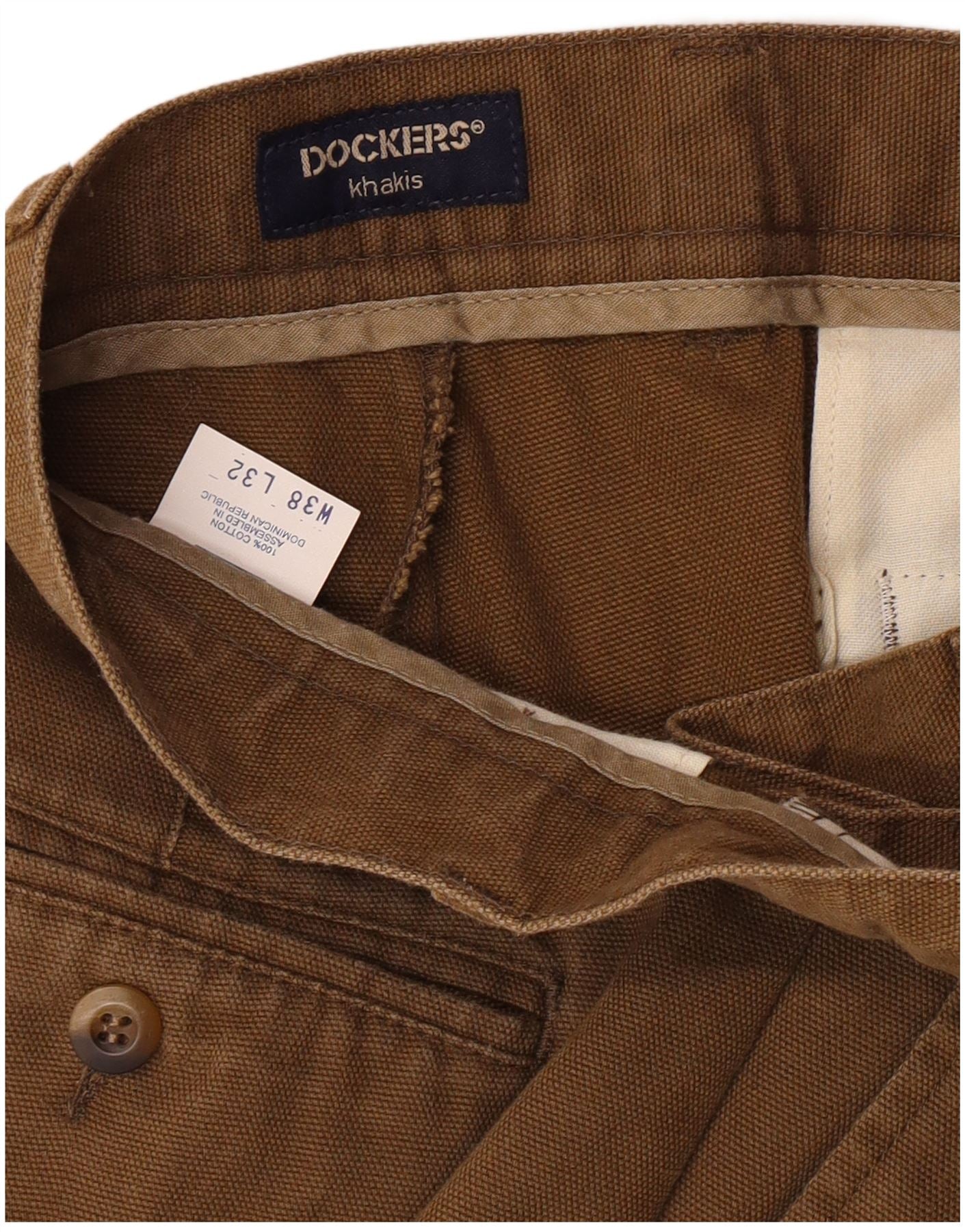 - AI beskrivelse: Disse klassiske Dockers-bukser til mænd er lavet af vævet brunt bomuld. Den almindelige pasform og knaplukning giver en tidløs stil. Med praktiske lommer giver de hverdagsfunktionalitet. Kakimodellen sikrer en alsidig tilføjelse til enhver garderobe. Disse bukser er lavet i Den Dominikanske Republik og kombinerer komfort og holdbarhed.