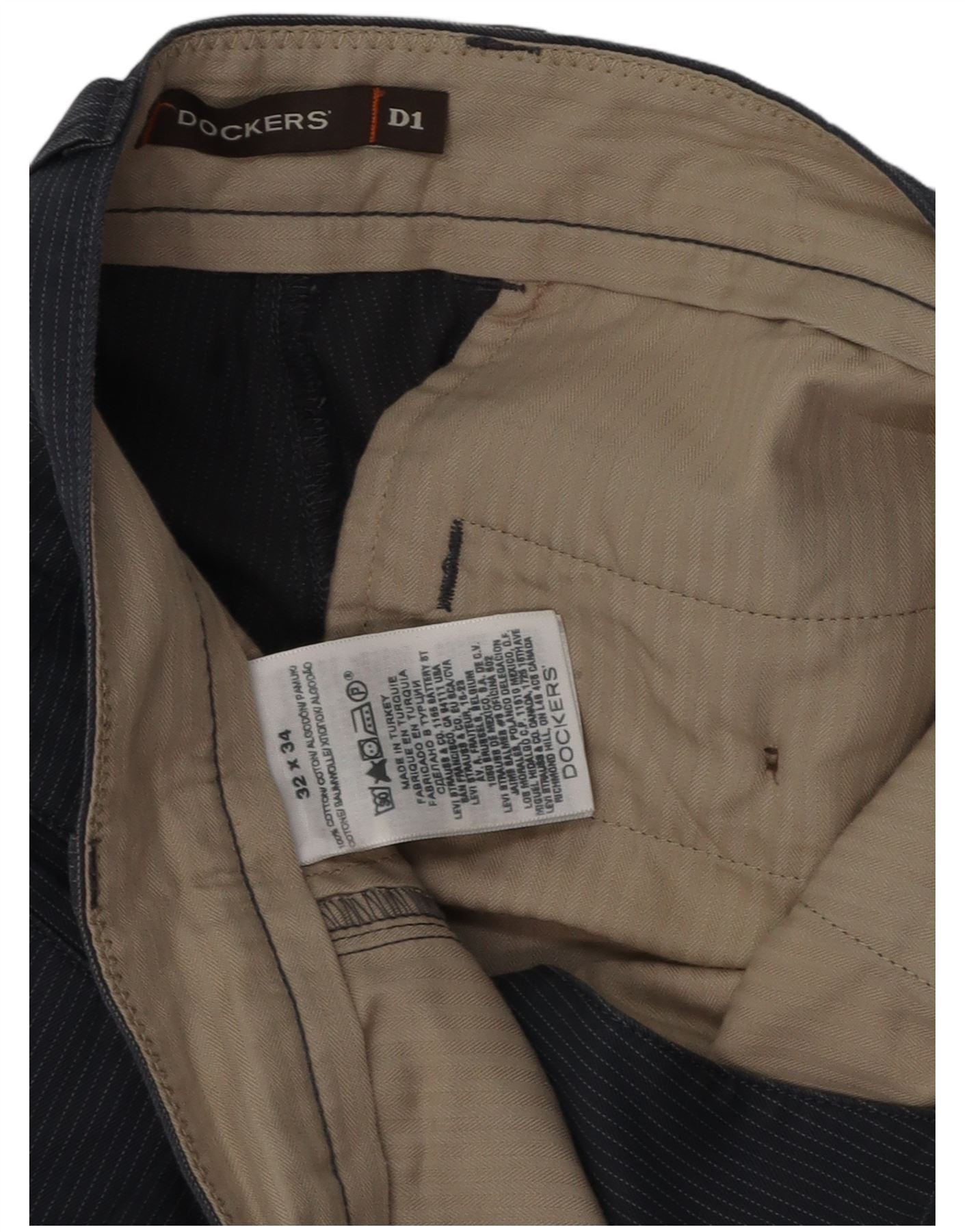 DOCKERS Straight Chino-bukser til mænd W32 L29 Marineblå nålestribet bomuld