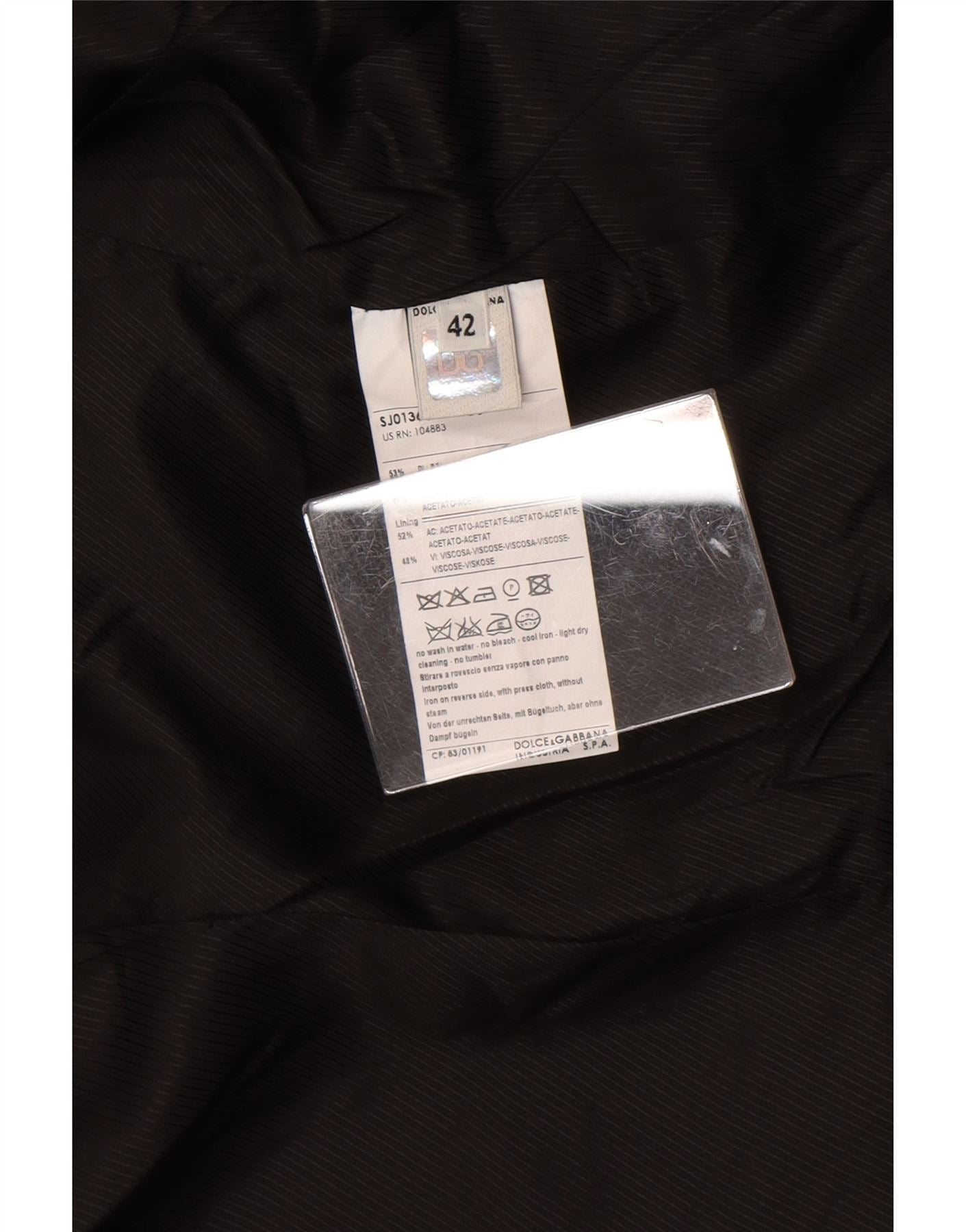 - AI beskrivelse: Denne Dolce & Gabbana dameblazer i 2 dele er lavet af en luksuriøs sort vævet acetat- og viskoseblanding. Stoffet har en subtil tekstureret finish, der tilføjer dybde. Den har en klassisk halsudskæring og lange ærmer. En frontlukning med to knapper og normal pasform skaber en raffineret silhuet. Funktionelle lommer fuldender dette elegante design.