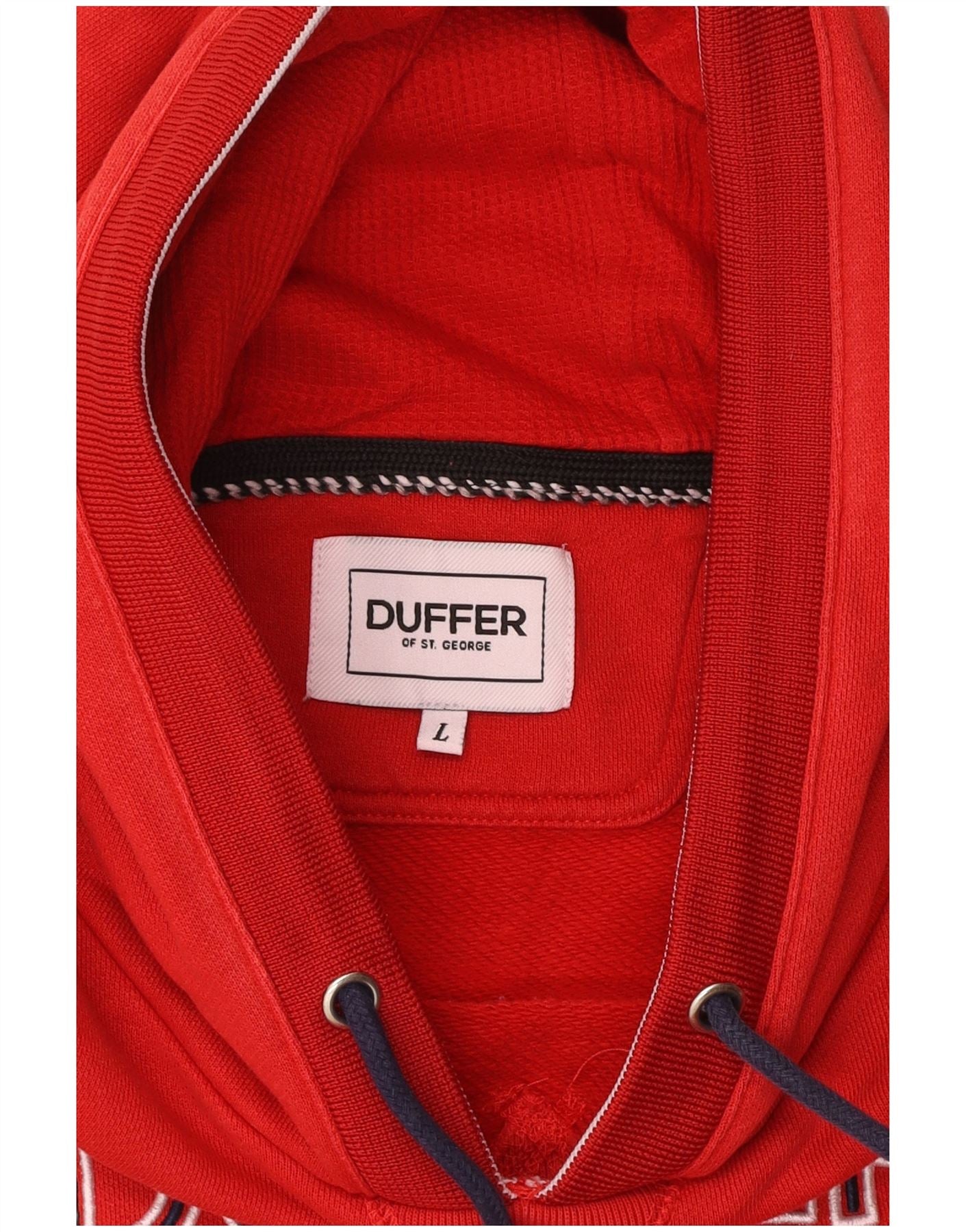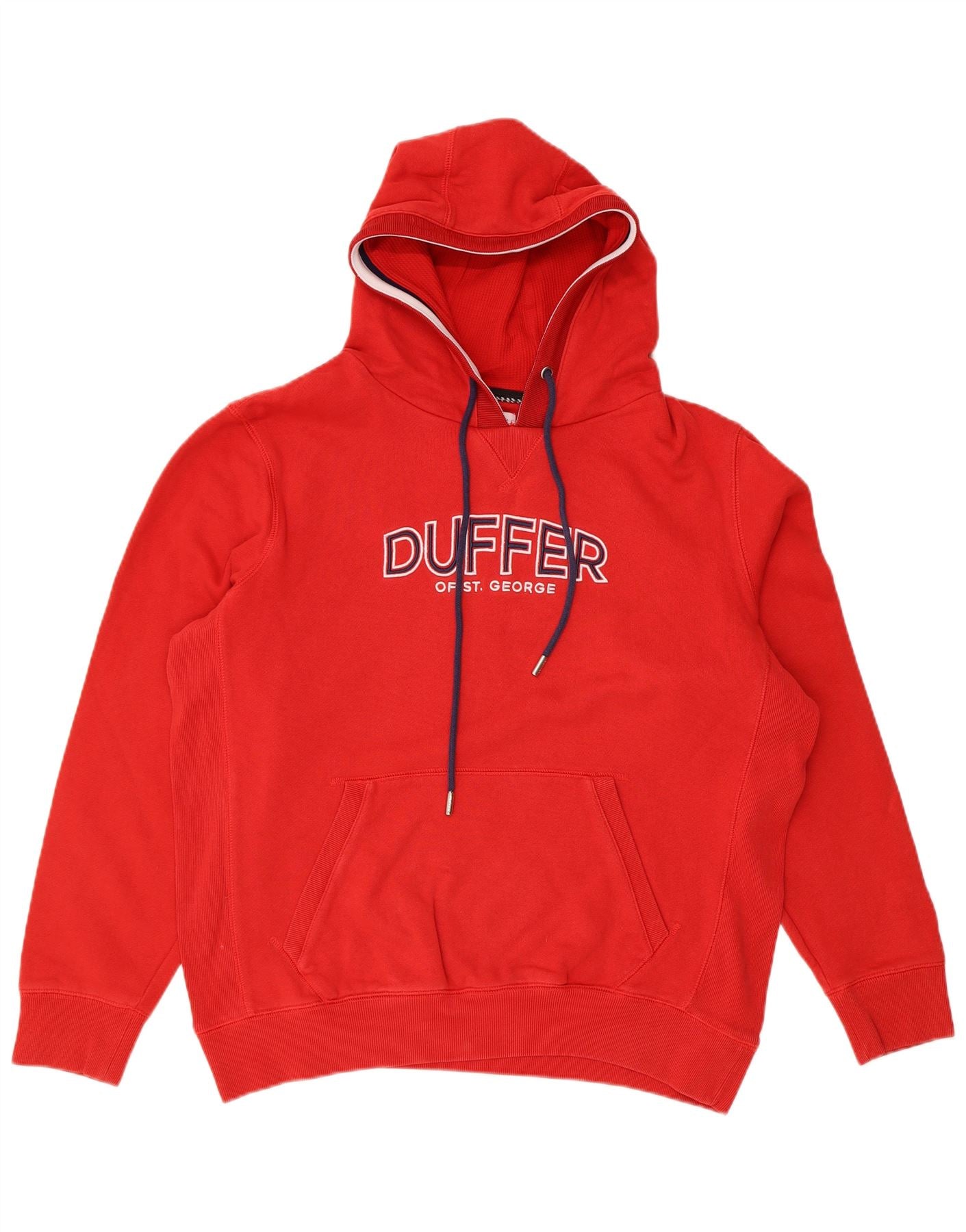 DUFFER OF ST GEORGE Mens Graphic Hoodie Jumper Large Red Cotton
