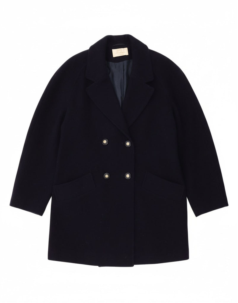 EASTEX Womens Oversized Double Breasted Coat UK 10 Small Navy Blue Wool