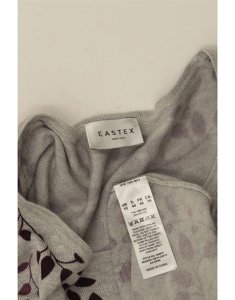 EASTEX Womens Top Long Sleeve UK 18 XL Grey Floral Viscose