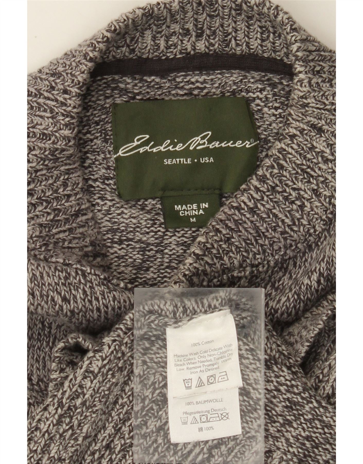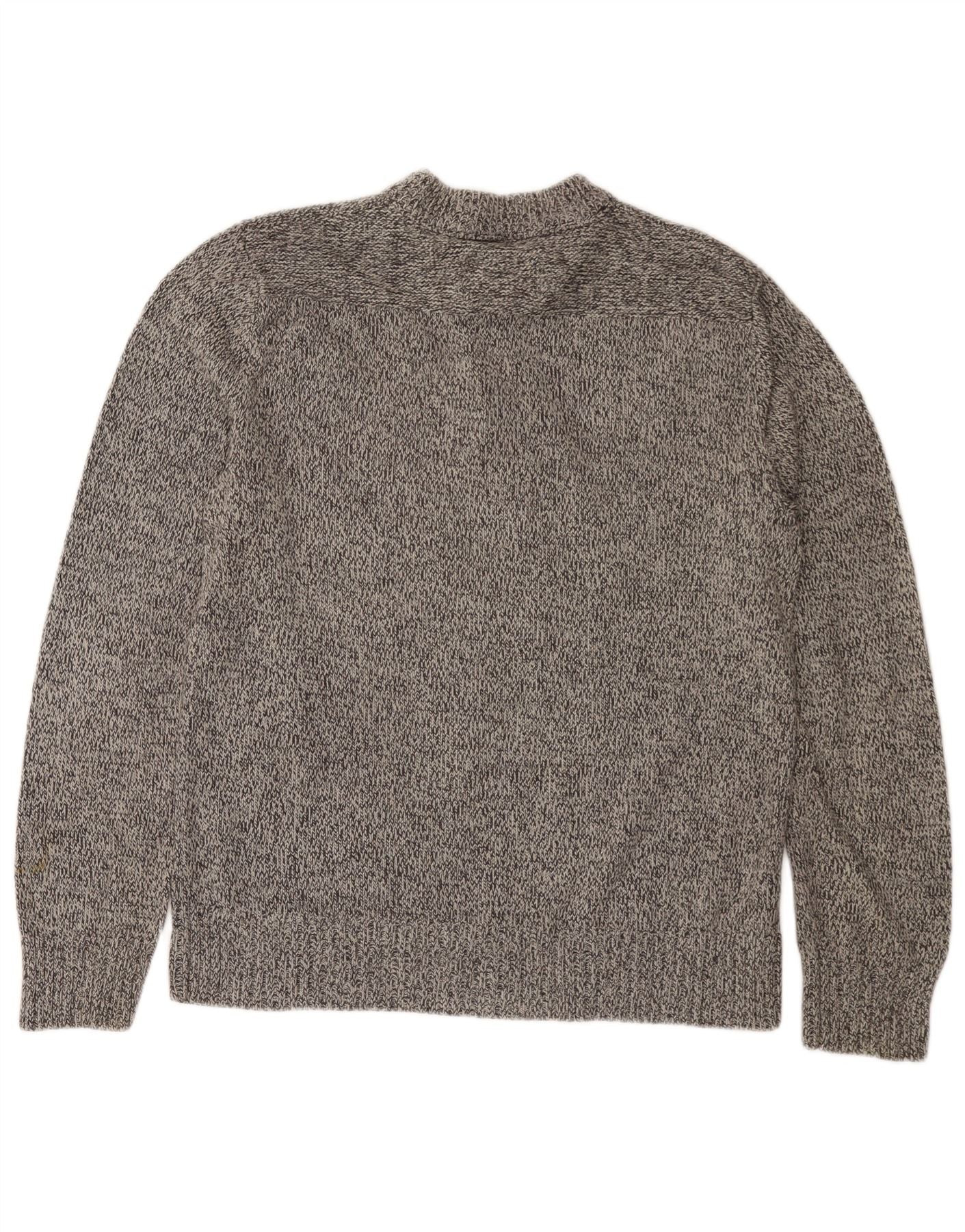 EDDIE BAUER Herre Button Neck Jumper Sweater Medium Grey Flecked Bomuld