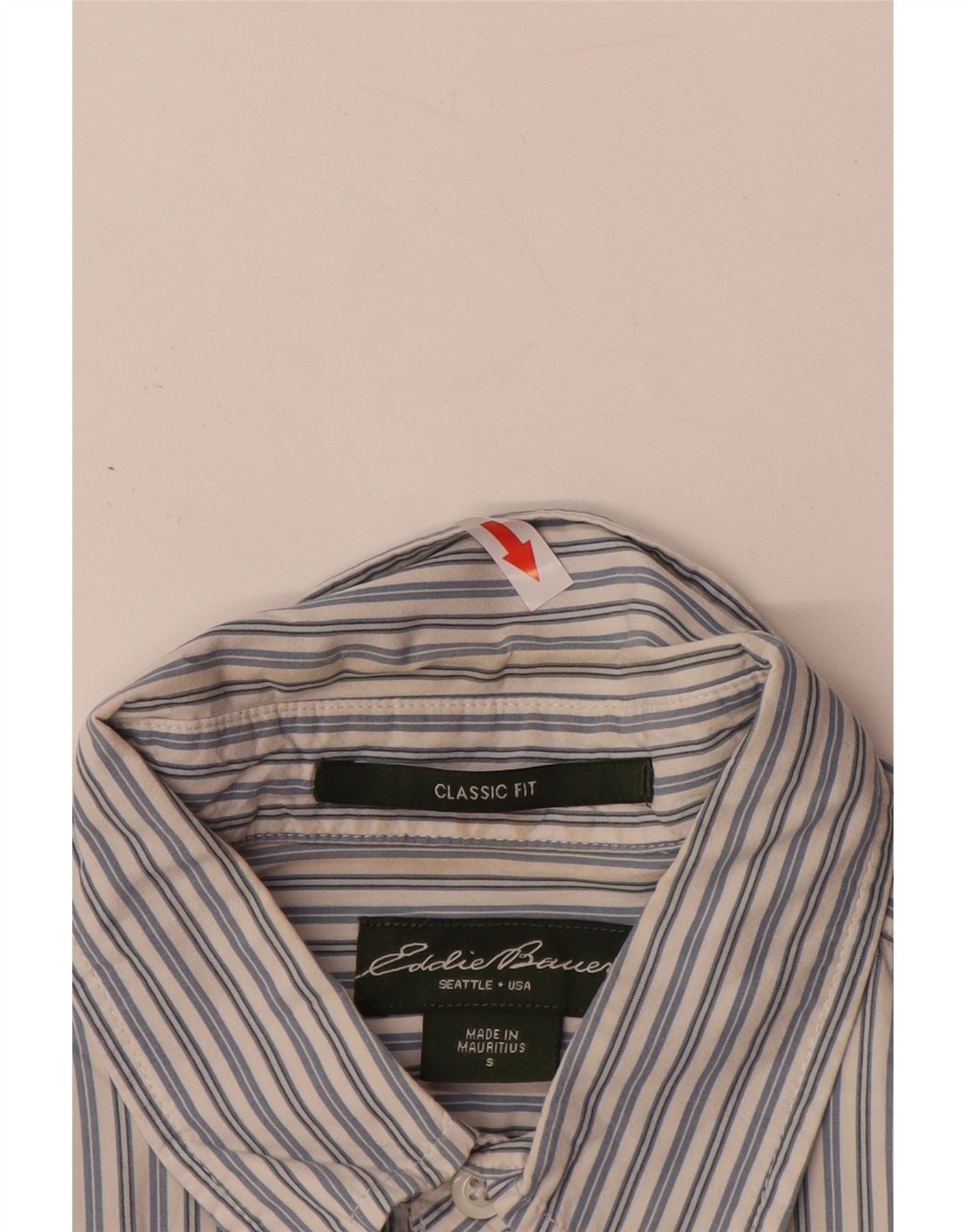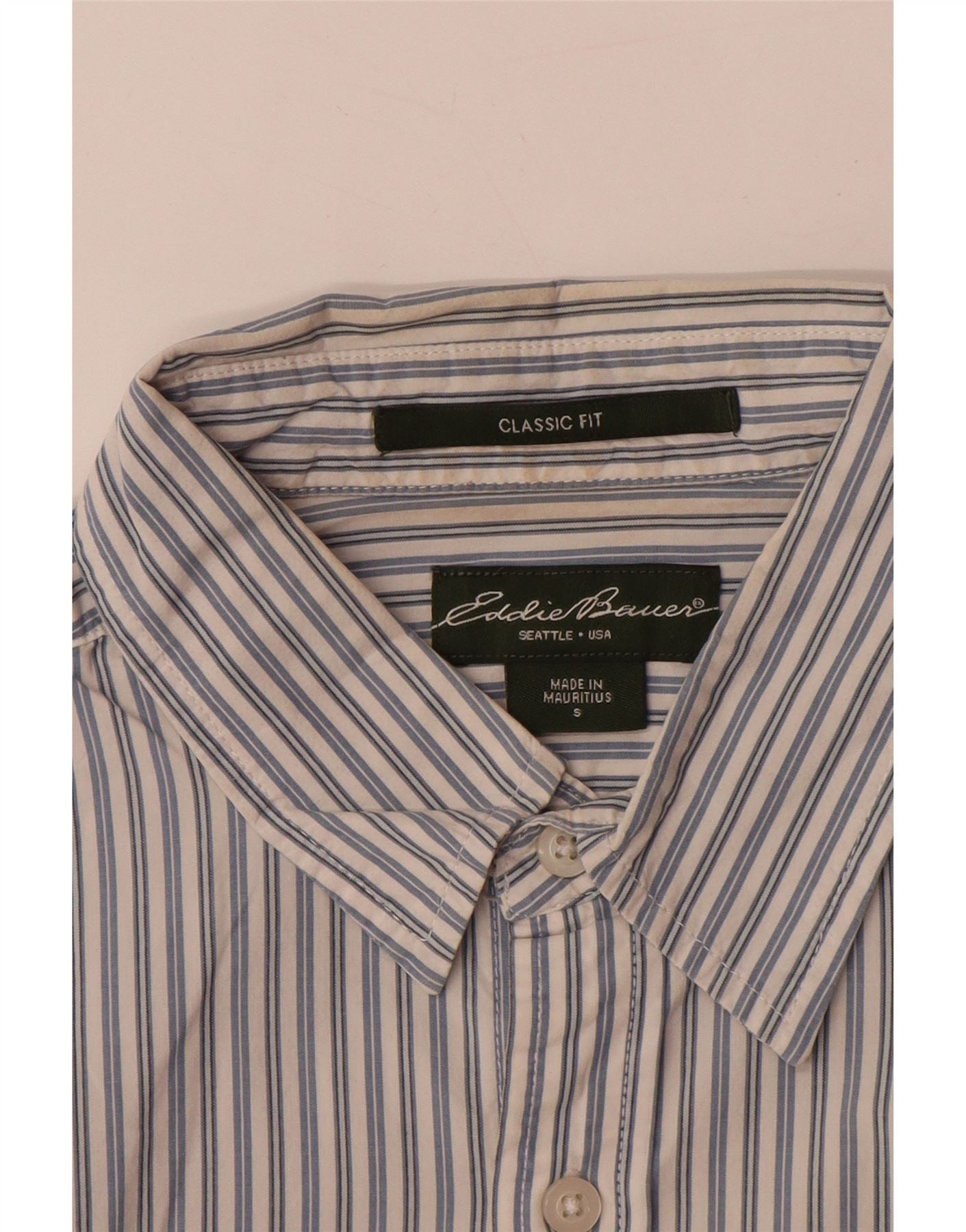 EDDIE BAUER Herre Classic Fit skjorte lille blå nålestribet bomuld
