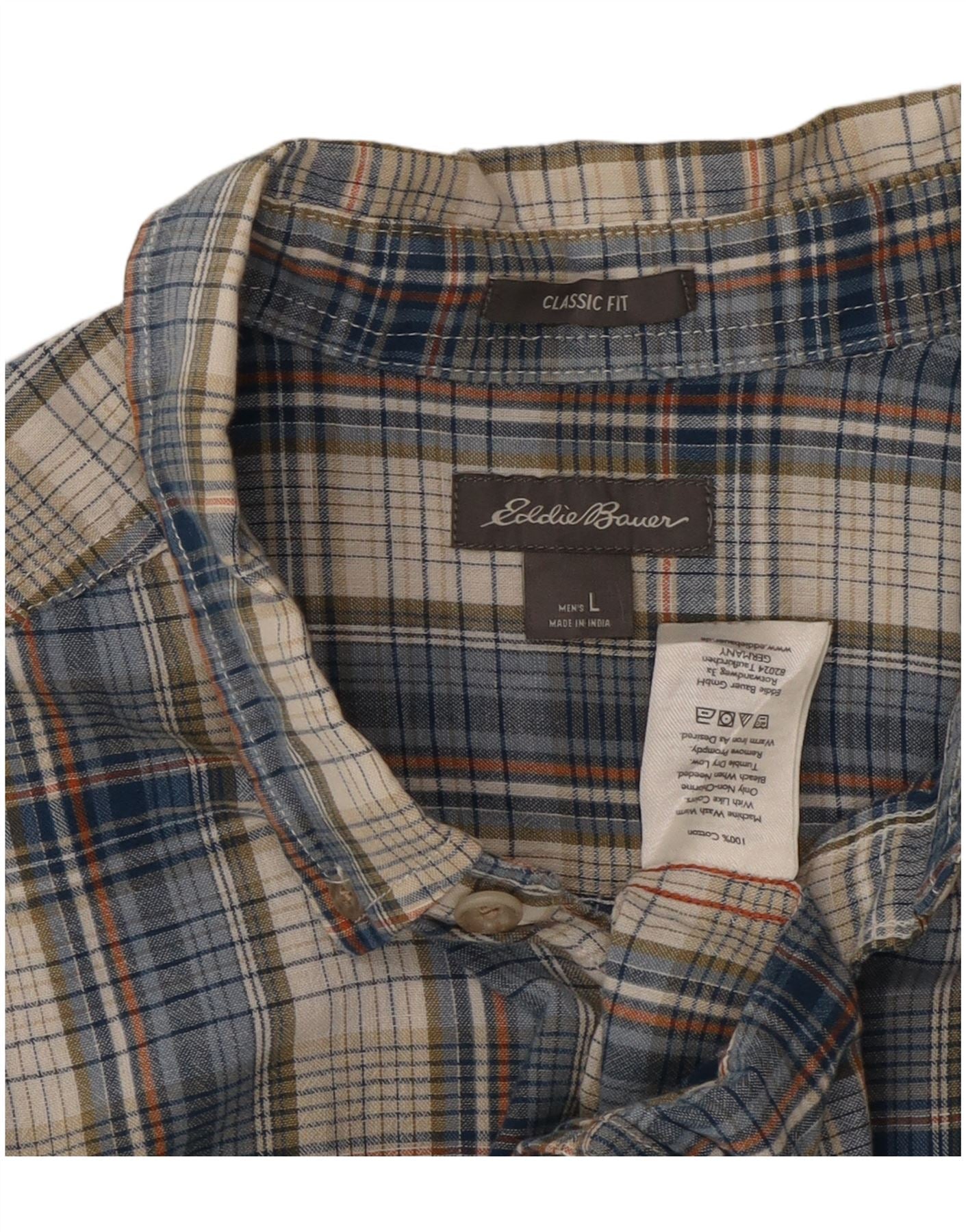 EDDIE BAUER Herre Classic Fit kortærmet skjorte Stor blå ternet bomuld