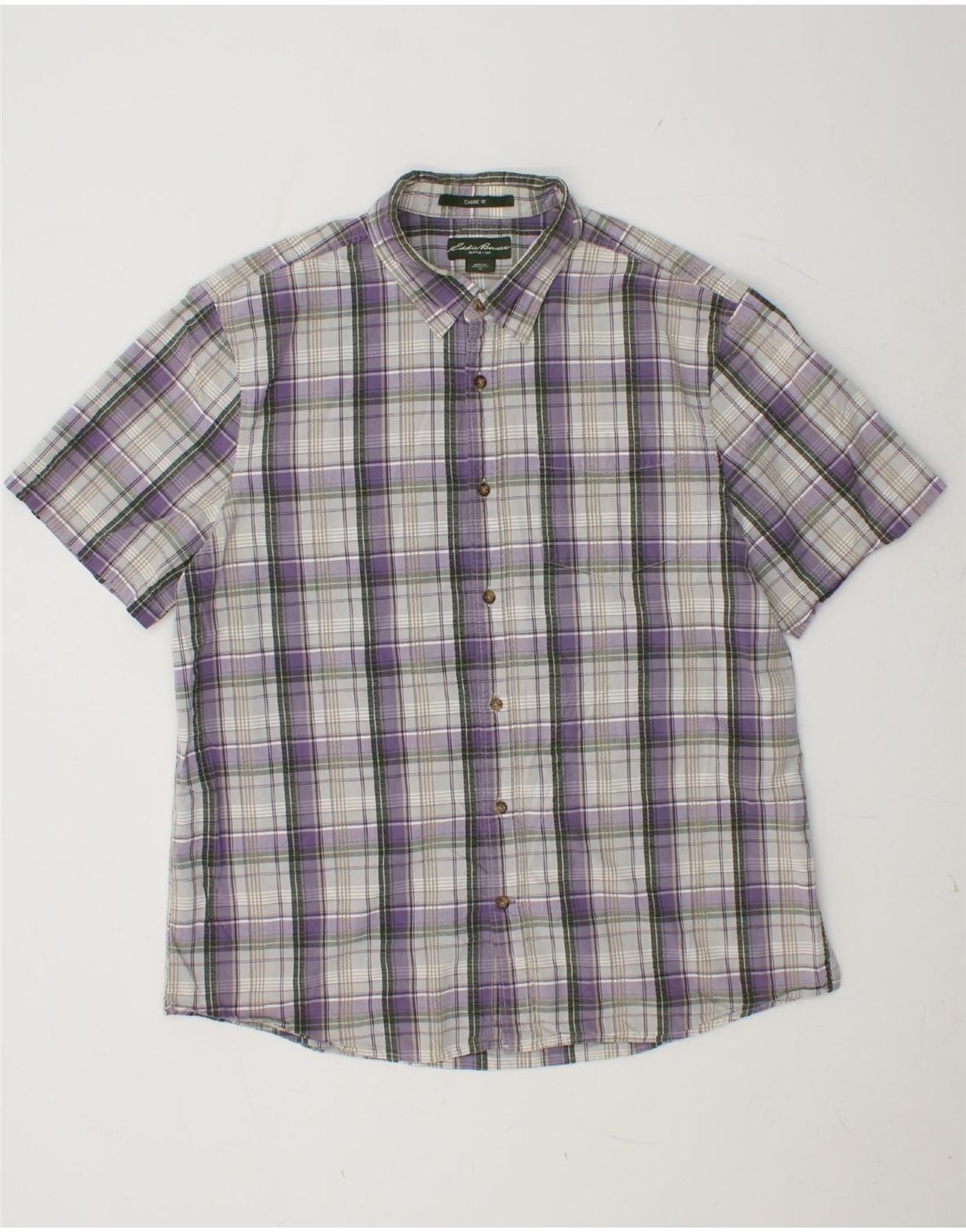 EDDIE BAUER Herre Classic Fit kortærmet skjorte XL lilla ternet