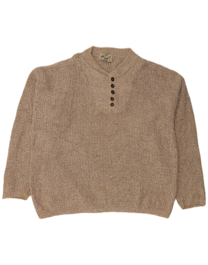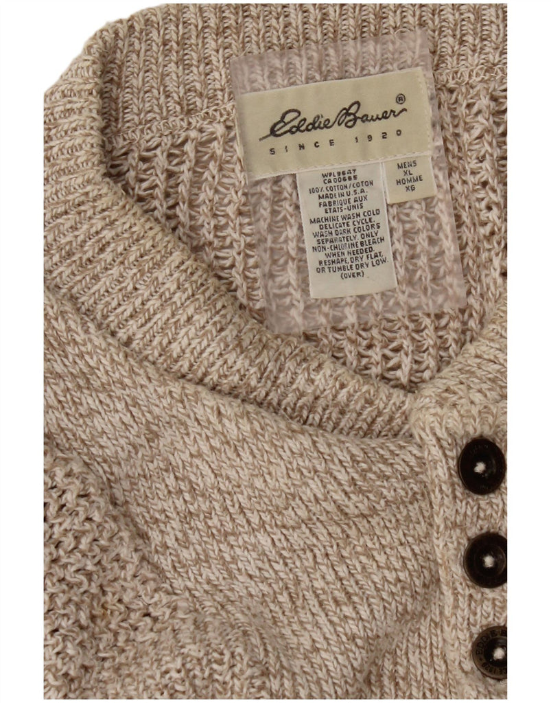 EDDIE BAUER Herre Oversized Button Neck Jumper Sweater XL Beige Flecked