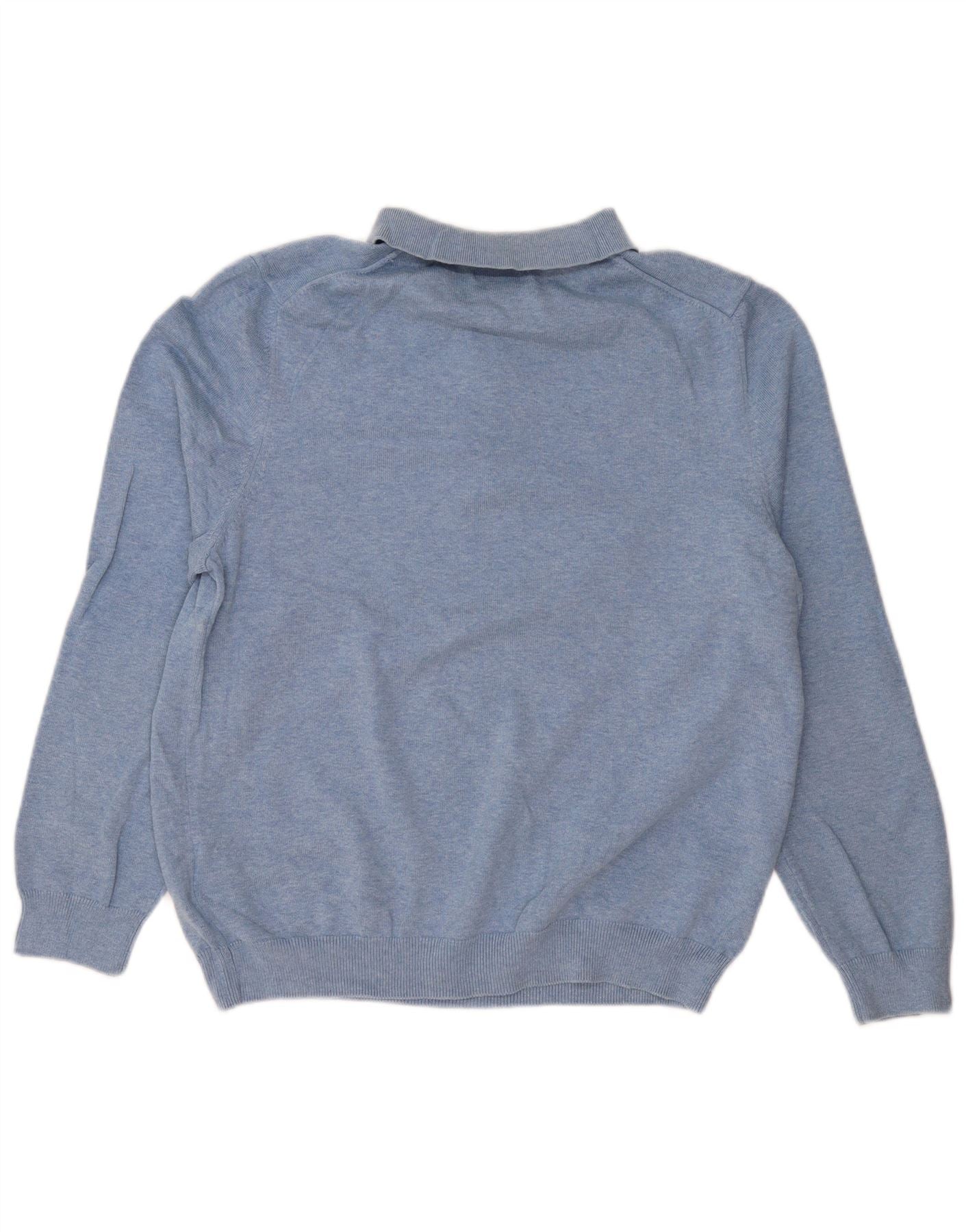 EDDIE BAUER Herre polo-hals sweater mellemblå bomuld
