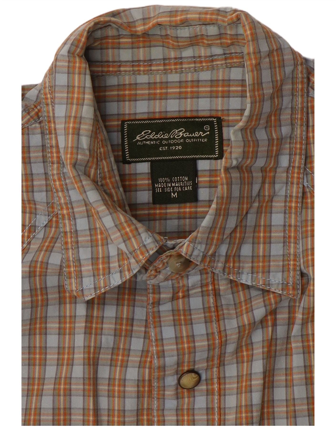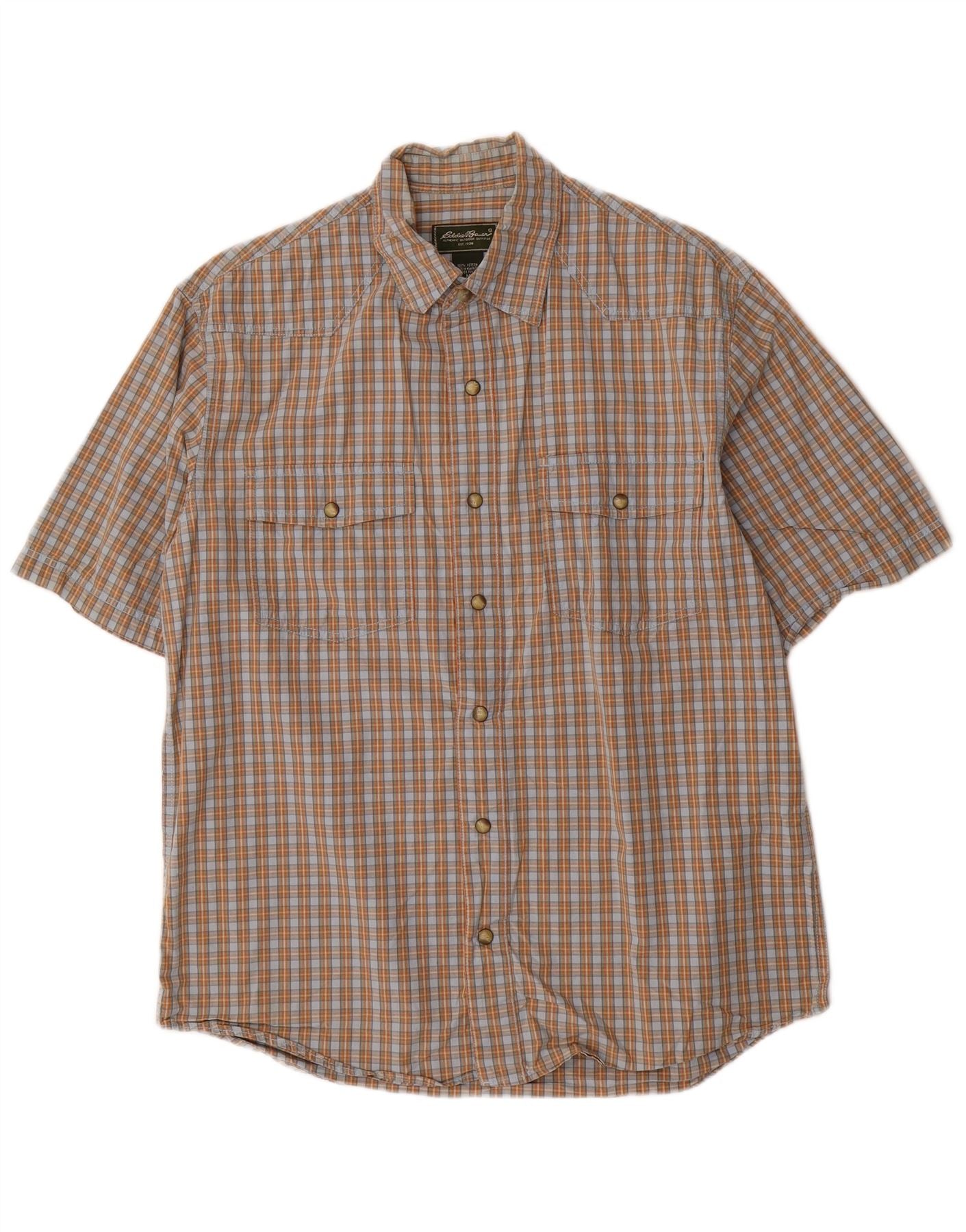 EDDIE BAUER Kortærmet herreskjorte Medium Blue Ternet Bomuld