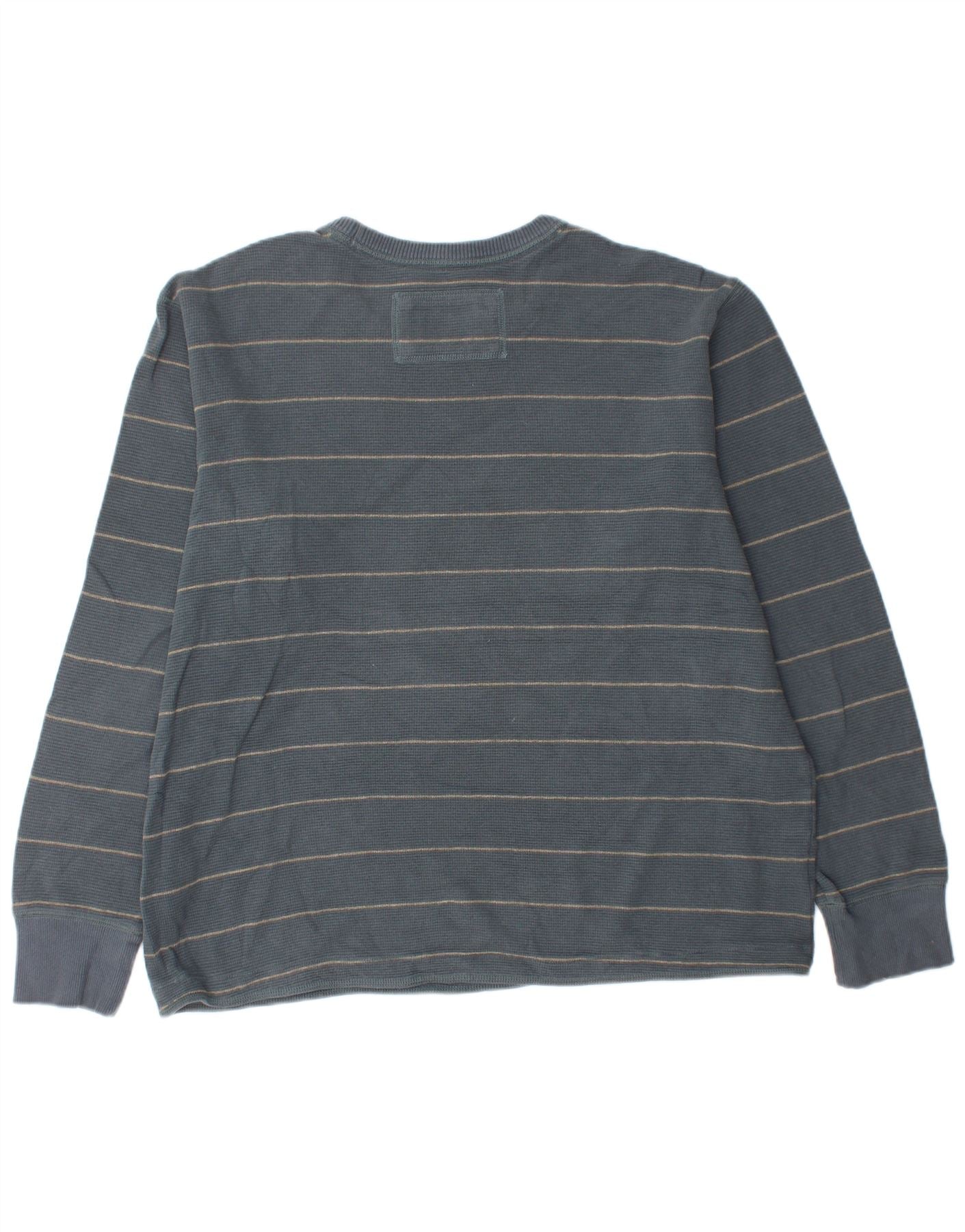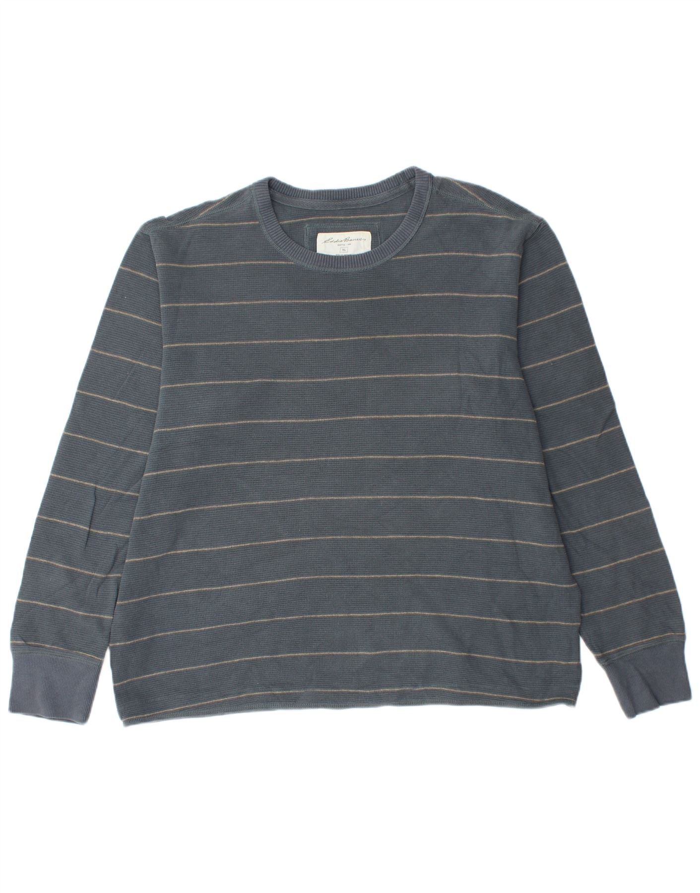 EDDIE BAUER Herre Top Langærmet XL Blå Stribet Bomuld