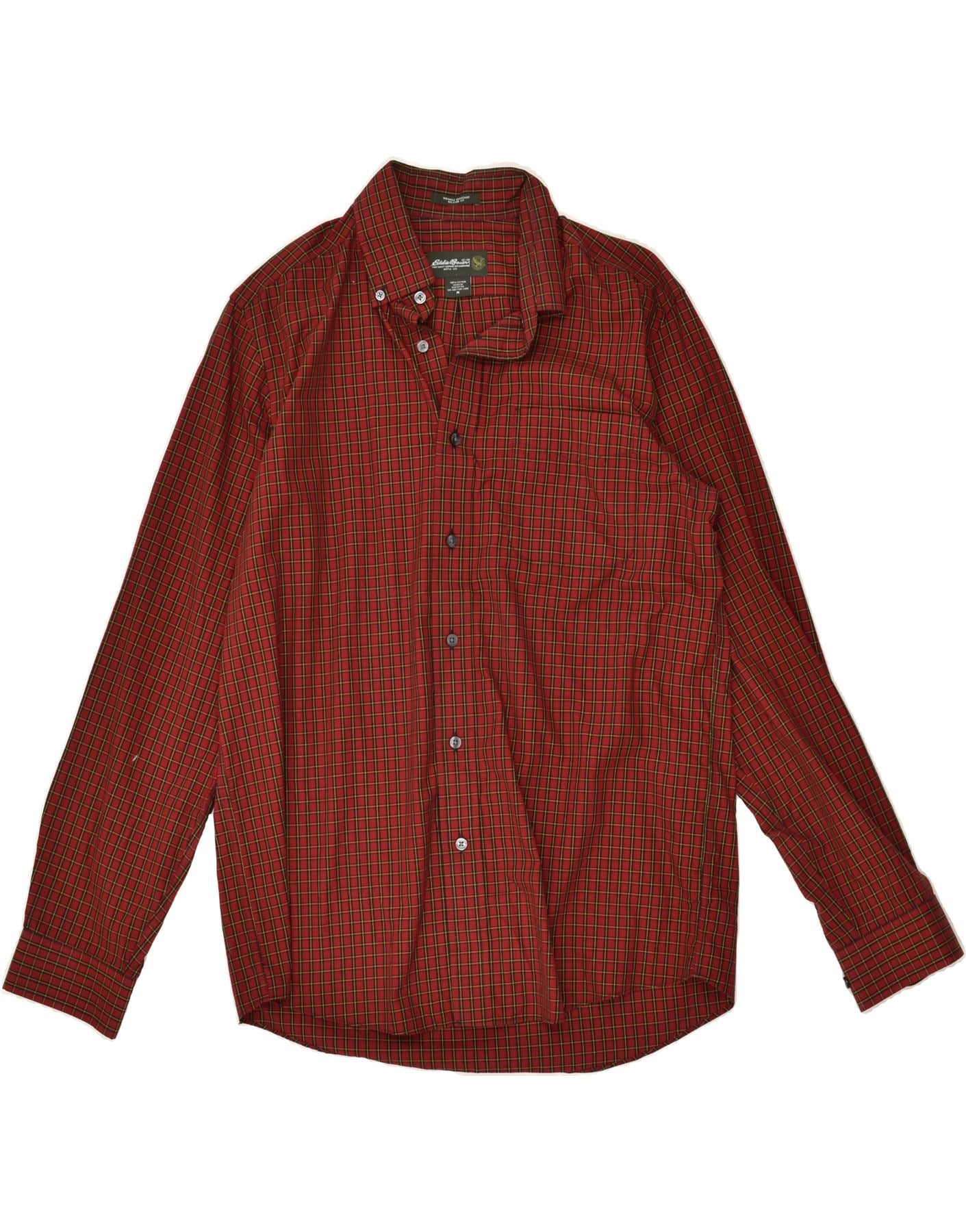 EDDIE BAUER Mens Wrinkle Resistant Relaxed Fit Shirt Medium Maroon Check