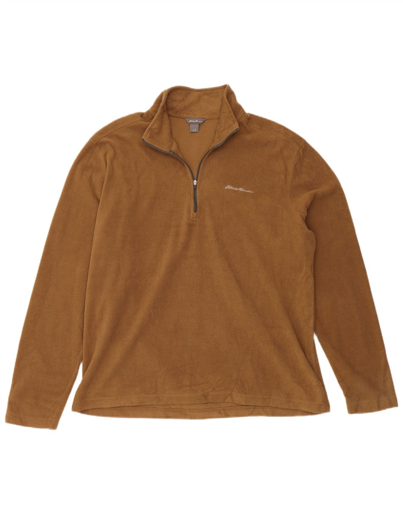 EDDIE BAUER Mens Zip Neck Fleece Jumper Large Brown Polyester
