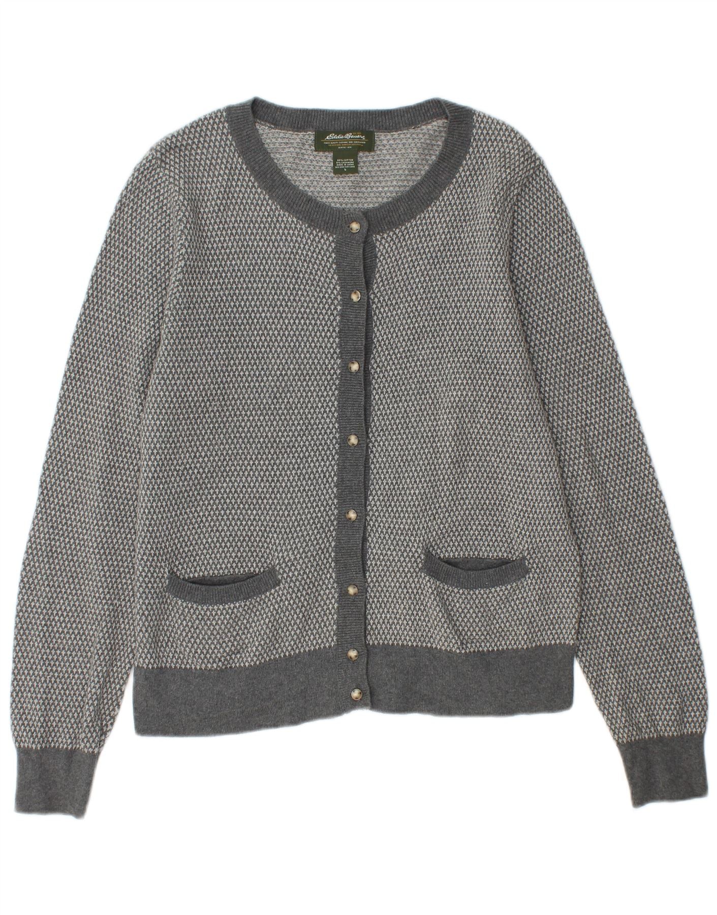 EDDIE BAUER Dame Cardigan Sweater UK 14 Stor Grå Bomuld