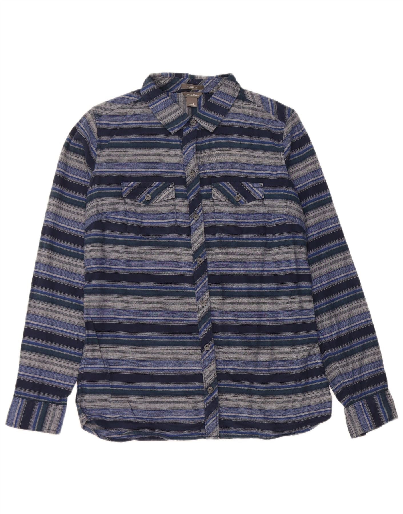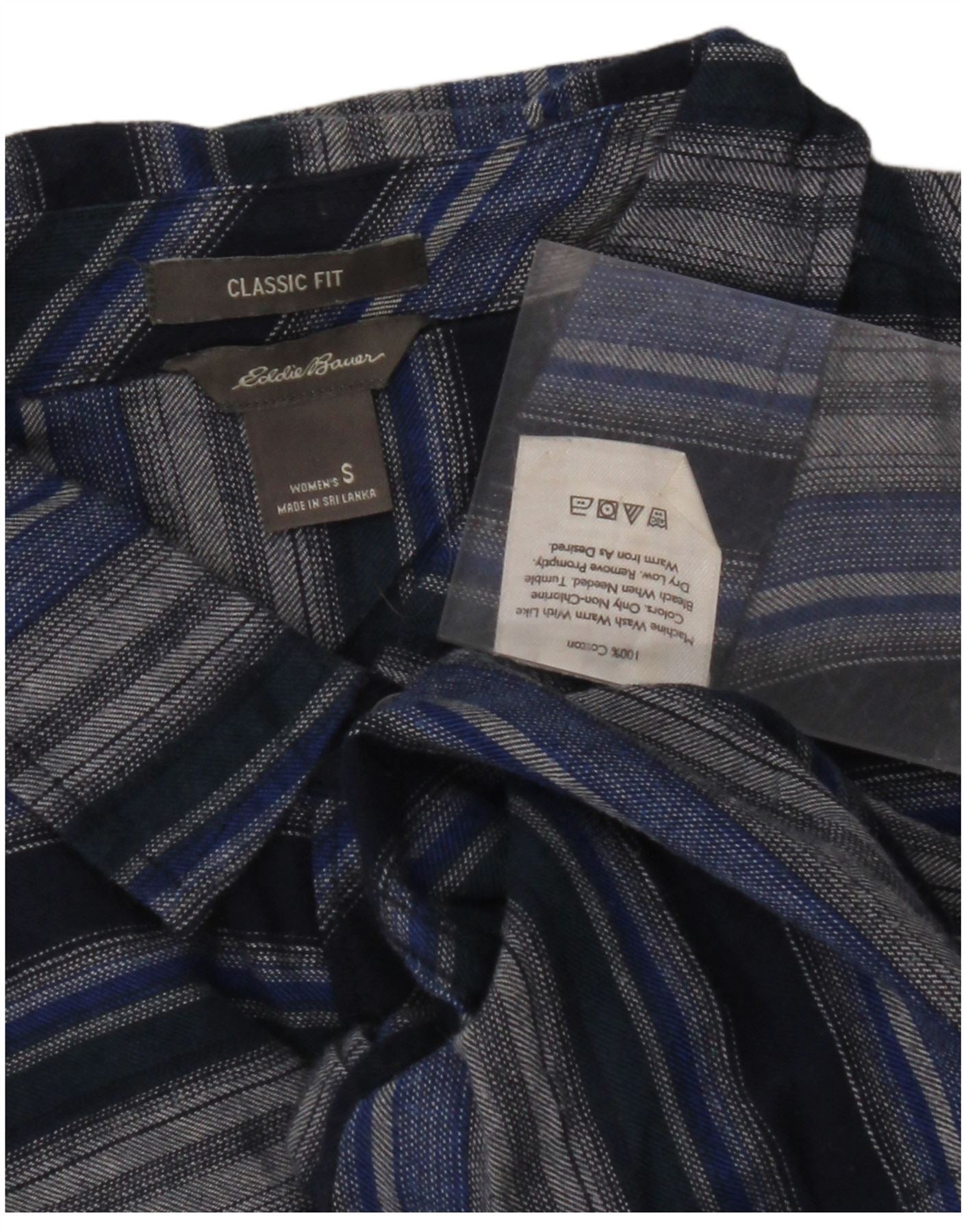 EDDIE BAUER Dame Classic Fit Flannel Shirt UK 10 Small Navy Blue Striped