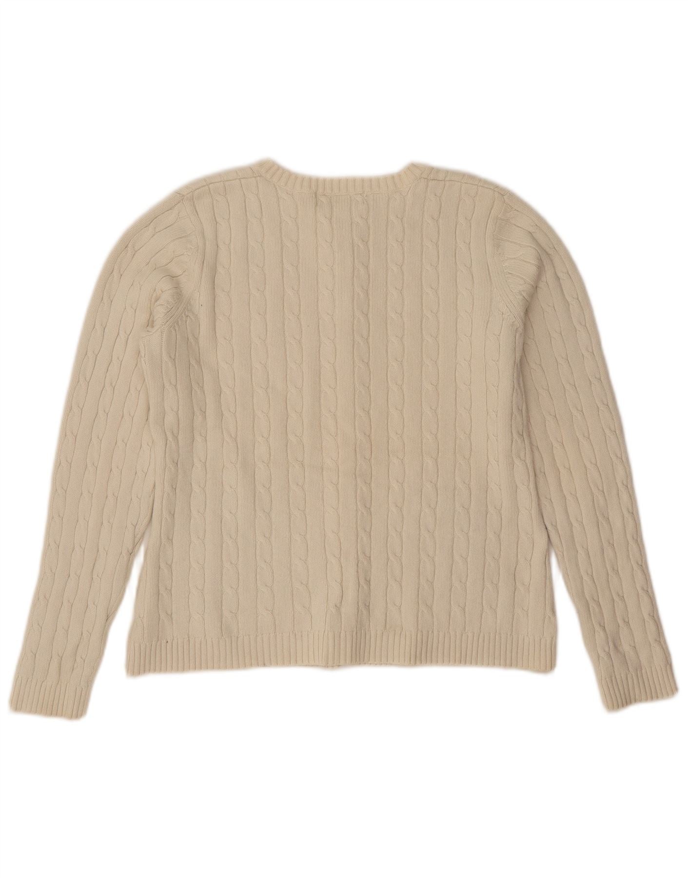 EDDIE BAUER Dame Crop Cardigan Sweater UK 14 Medium Off White Bomuld