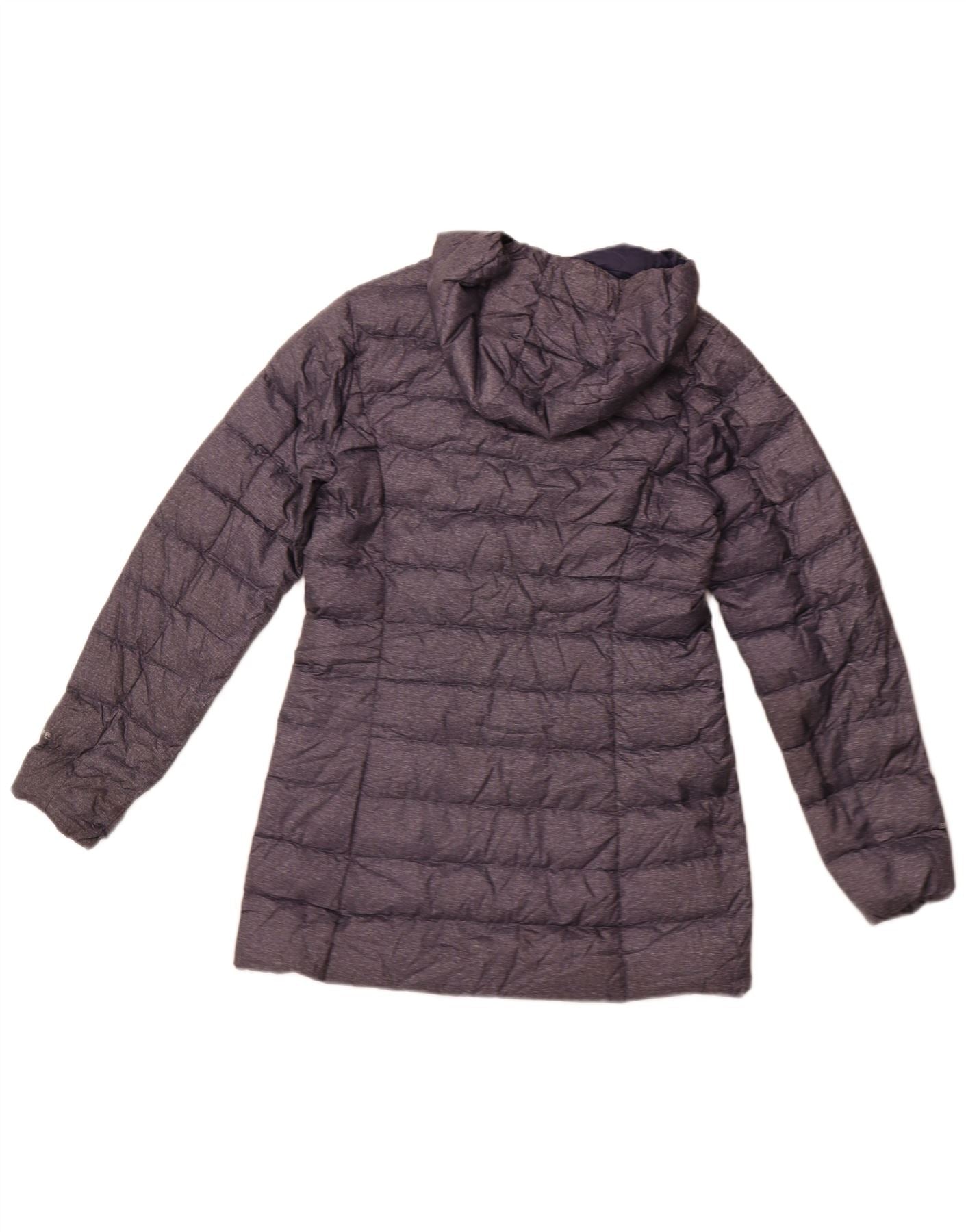 EDDIE BAUER Dame hætte polstret frakke UK 10 Small Navy Blue Polyester