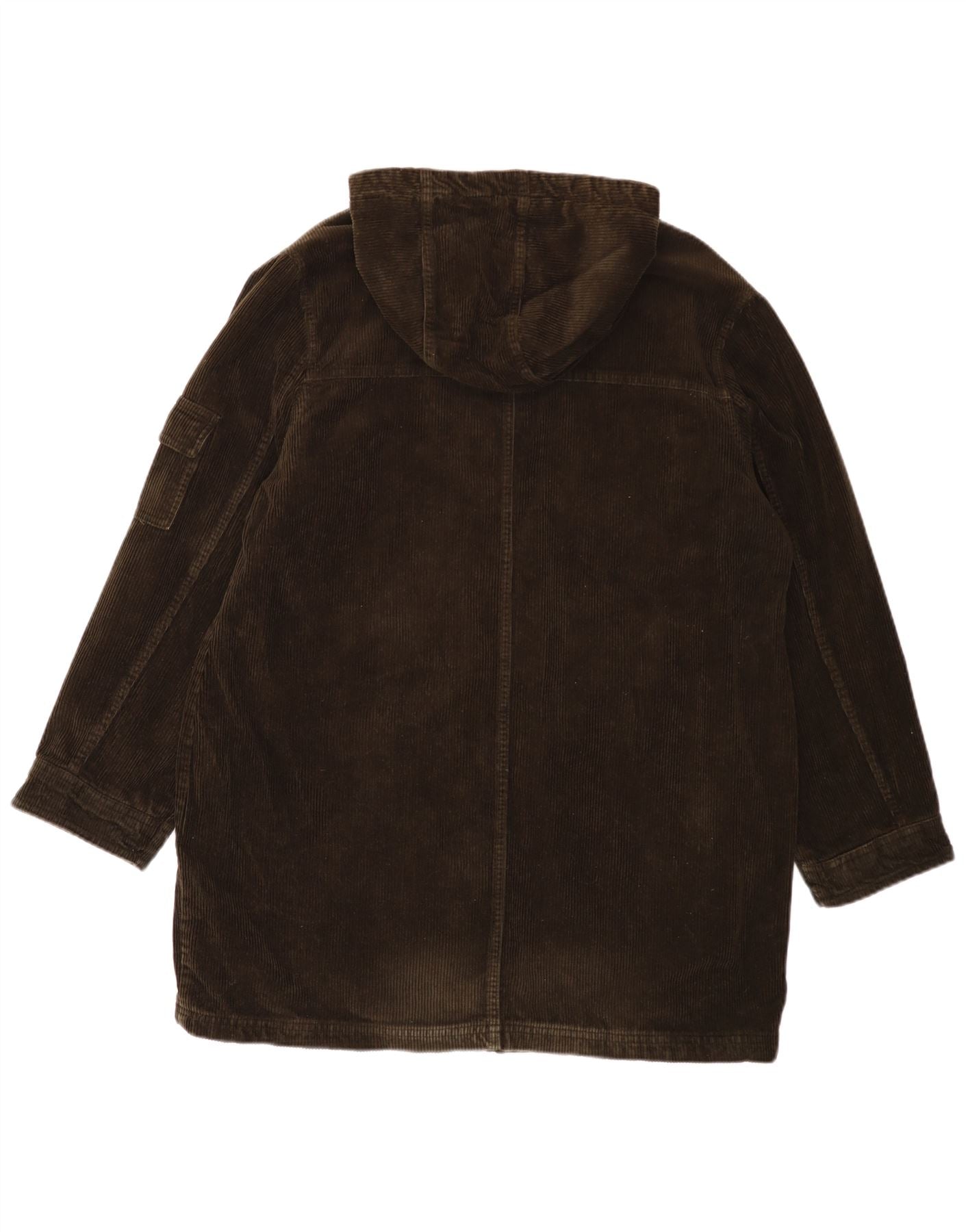 EDDIE BAUER Dame Oversized Hooded Corduroy Frakke UK 16 Stor Khaki Bomuld