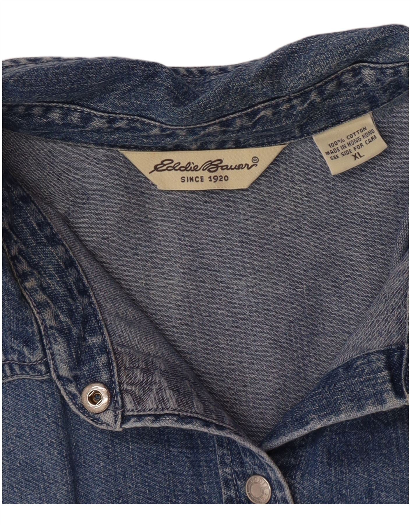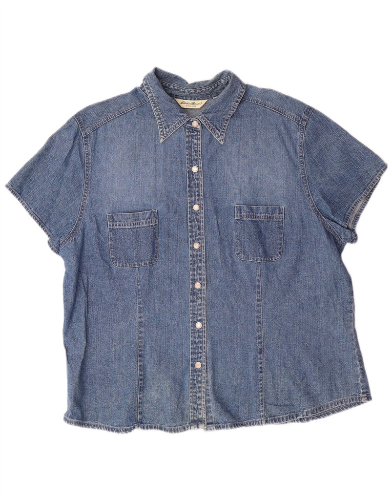 EDDIE BAUER Kortærmet denimskjorte til kvinder UK 18 XL Blå bomuld