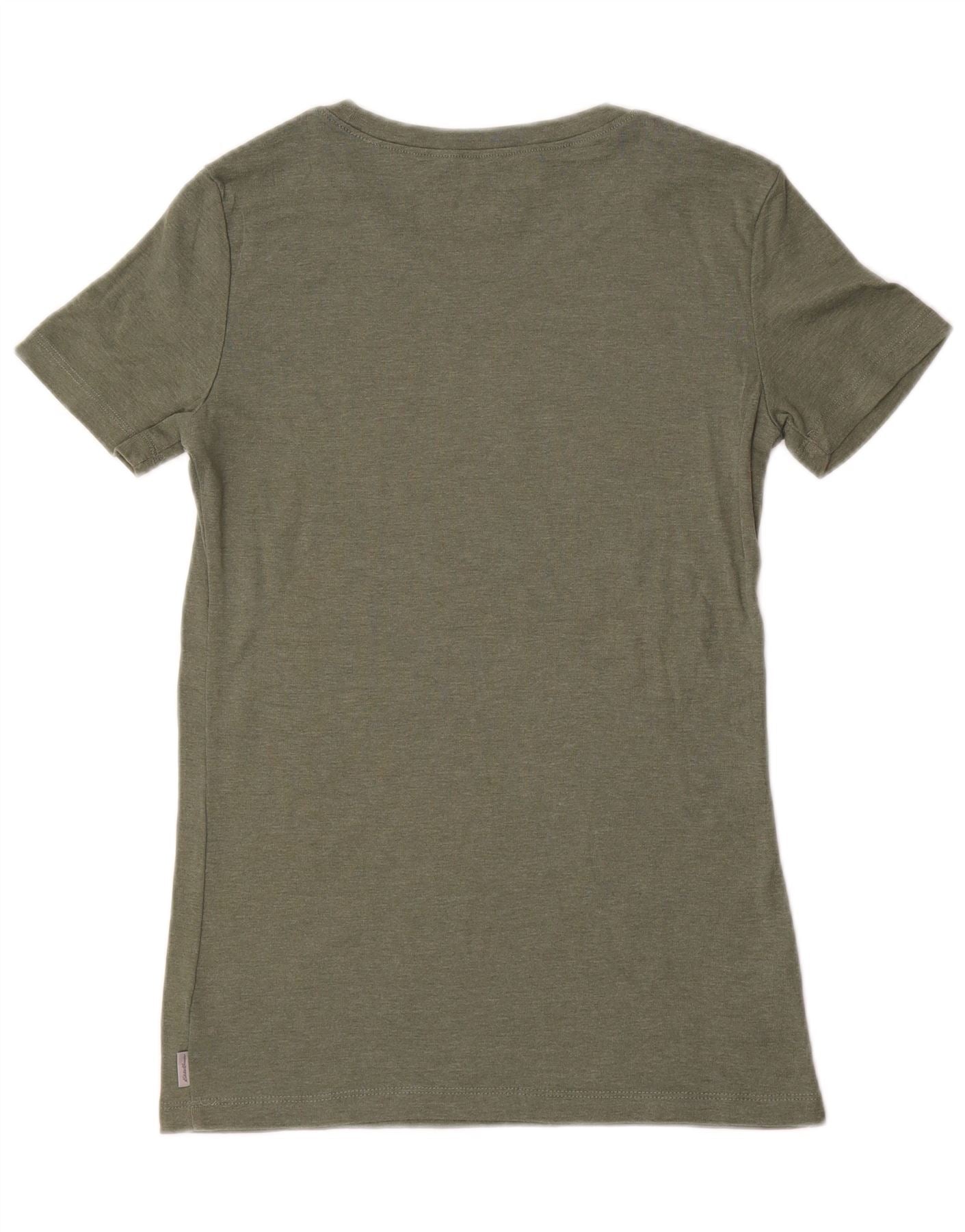 EDDIE BAUER Dame T-Shirt Top UK 10 Small Khaki Bomuld