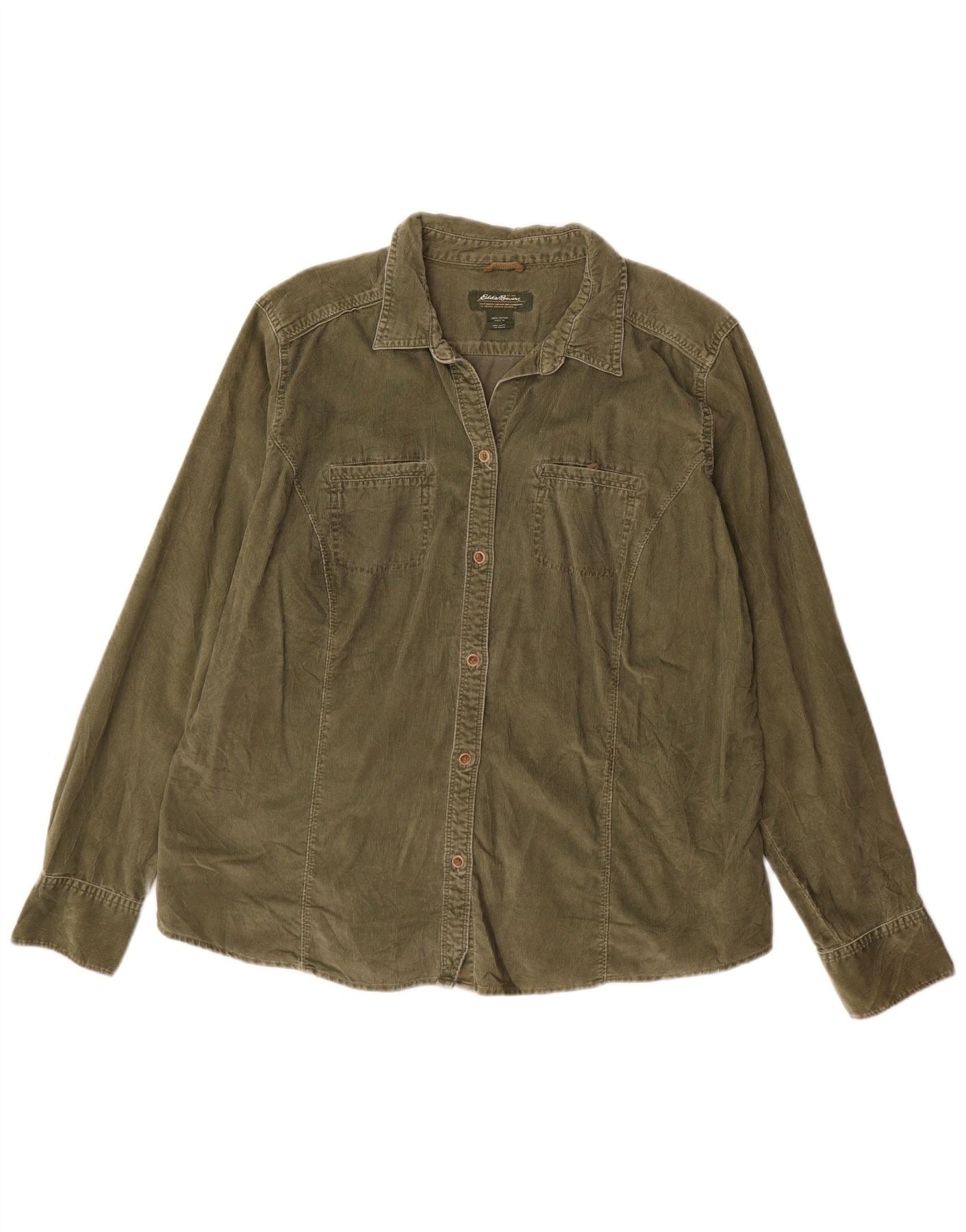 EDDIE BAUER Kvinder høj fløjlsskjorte UK 18 XL Grøn bomuld