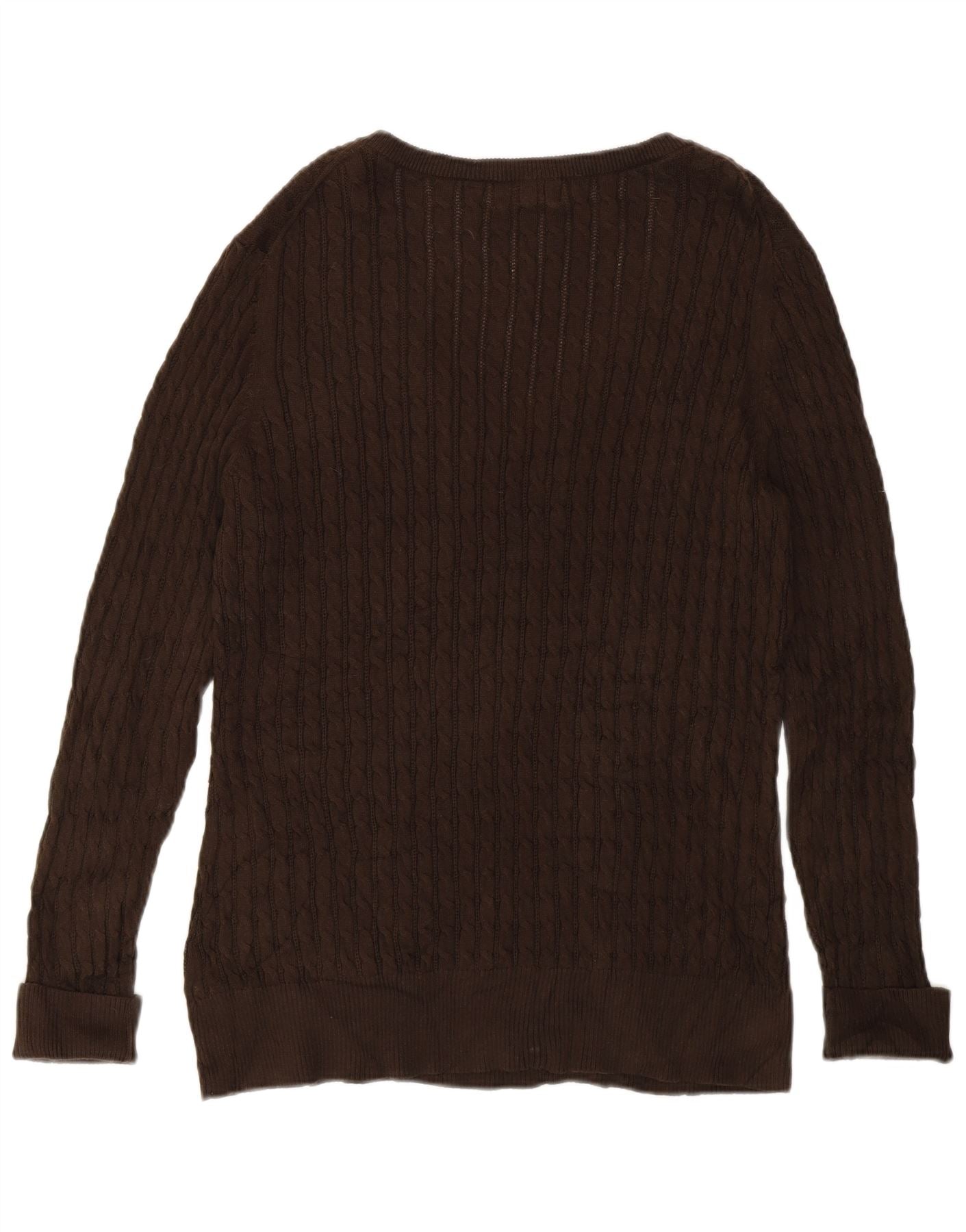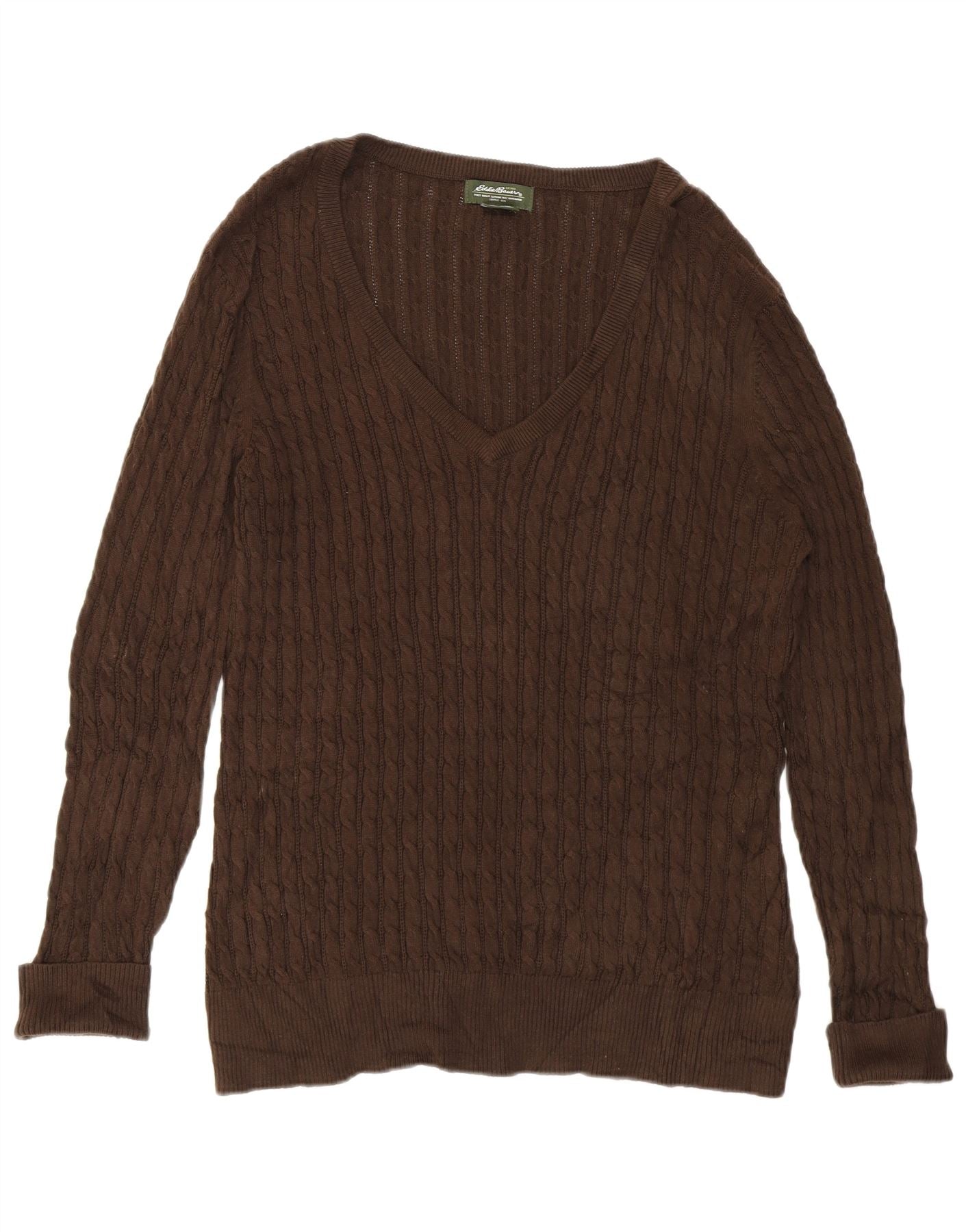 EDDIE BAUER Dame V-hals sweater UK 18 XL Brun Bomuld
