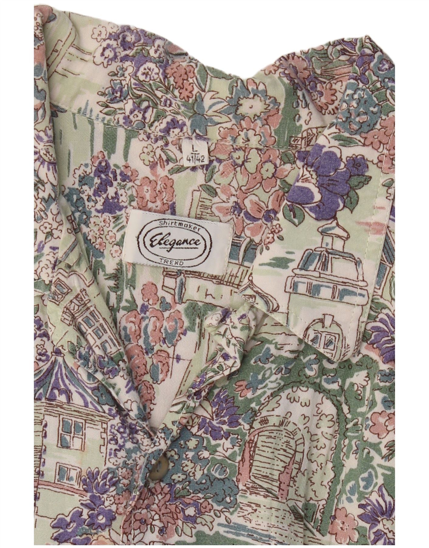 ELEGANCE kortærmet herreskjorte størrelse 41/42 Stor flerfarvet blomster