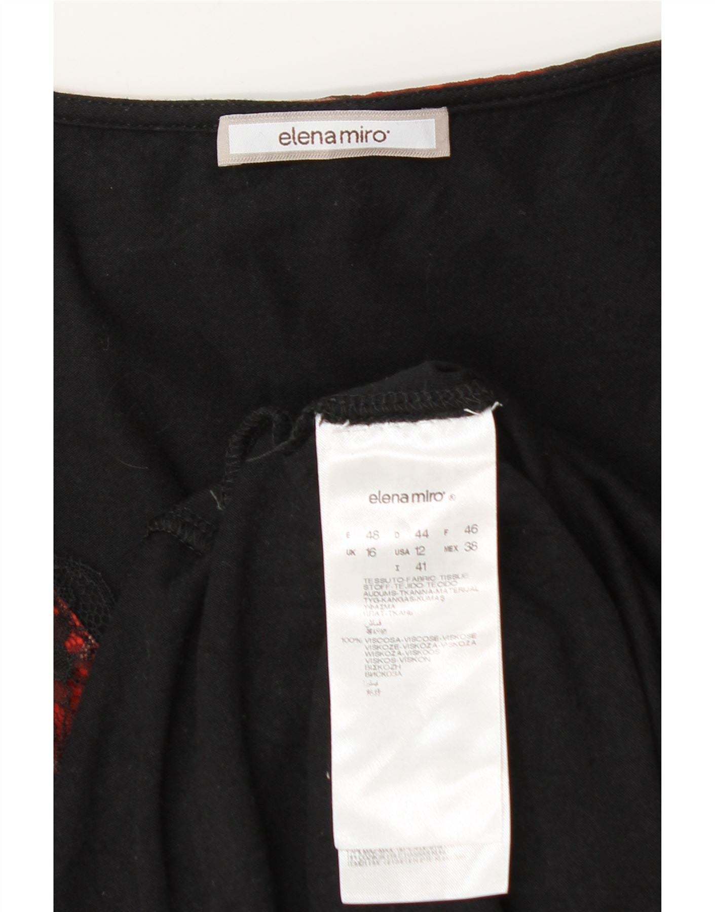 ELENA MIRO Dame 3/4-ærmet blusetop UK 16 Large Red Floral Viscose