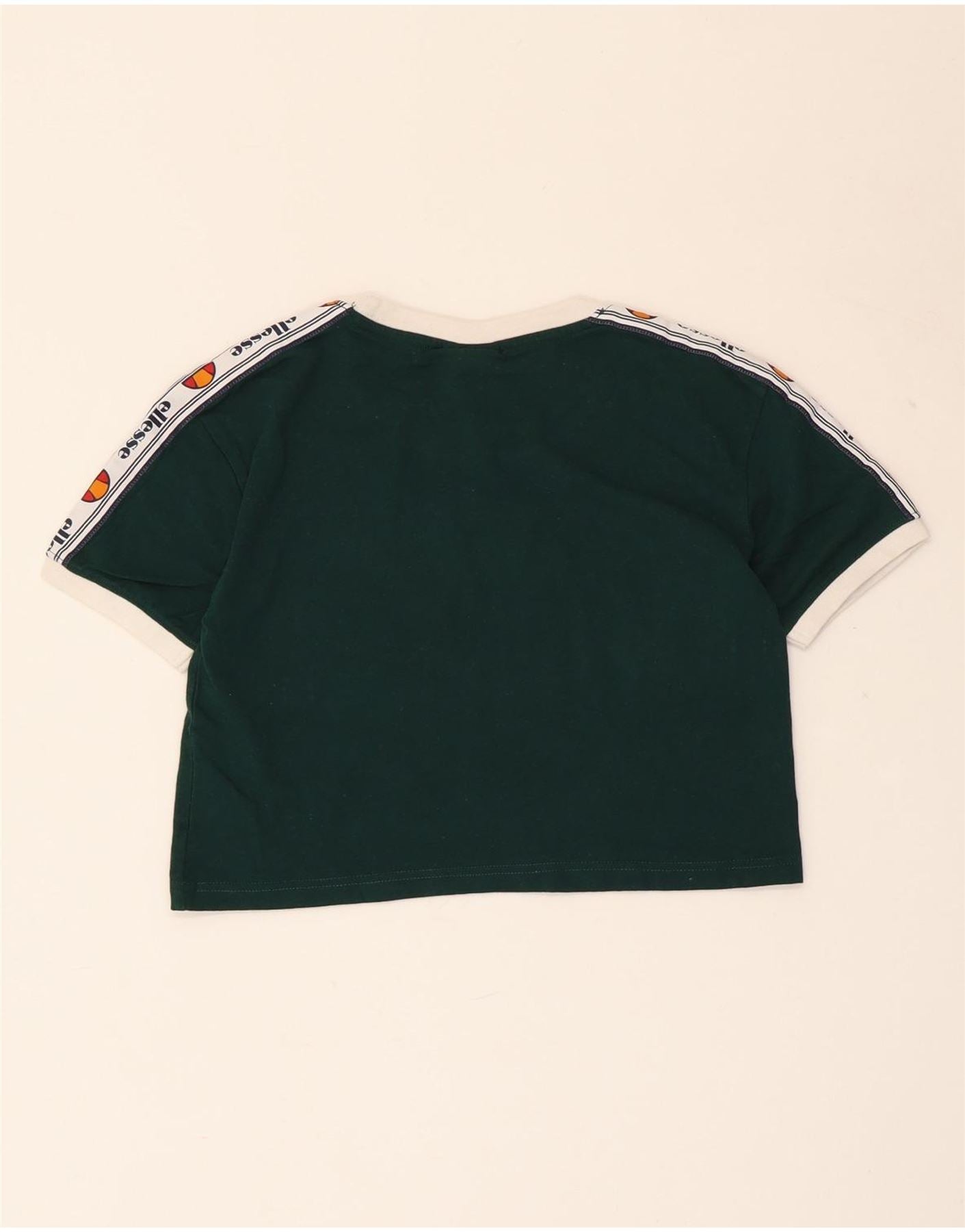 ELLESSE Dame Crop Grafisk T-Shirt Top UK 4 XS Grøn Bomuld