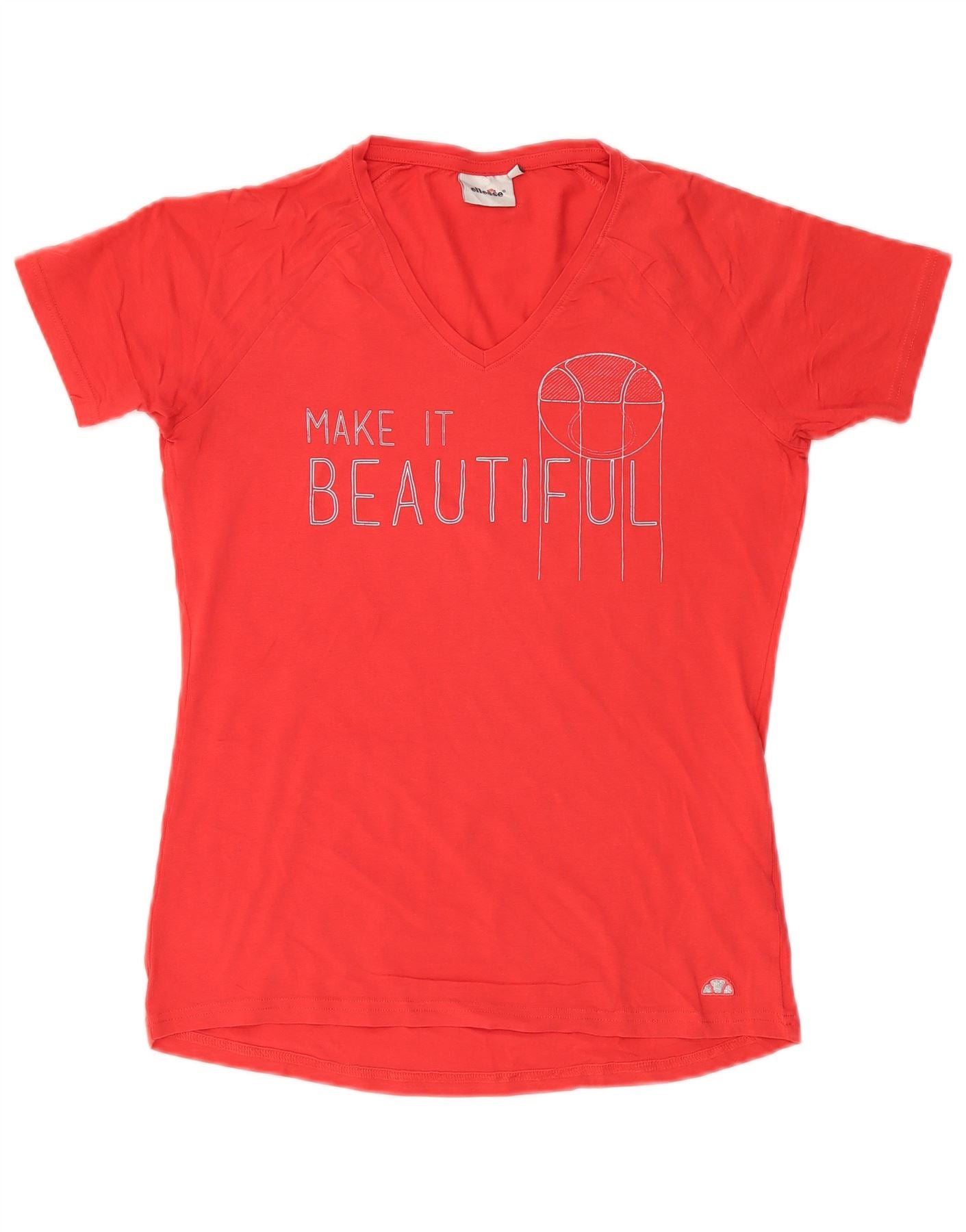 Ellesse Dame Grafisk T-Shirt Top UK 14 Stor Rød Bomuld