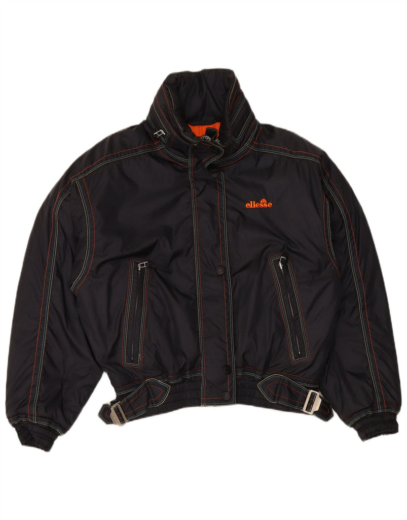 ELLESSE Womens Hooded Bomber Jacket UK 10 Small Navy Blue Polyamide