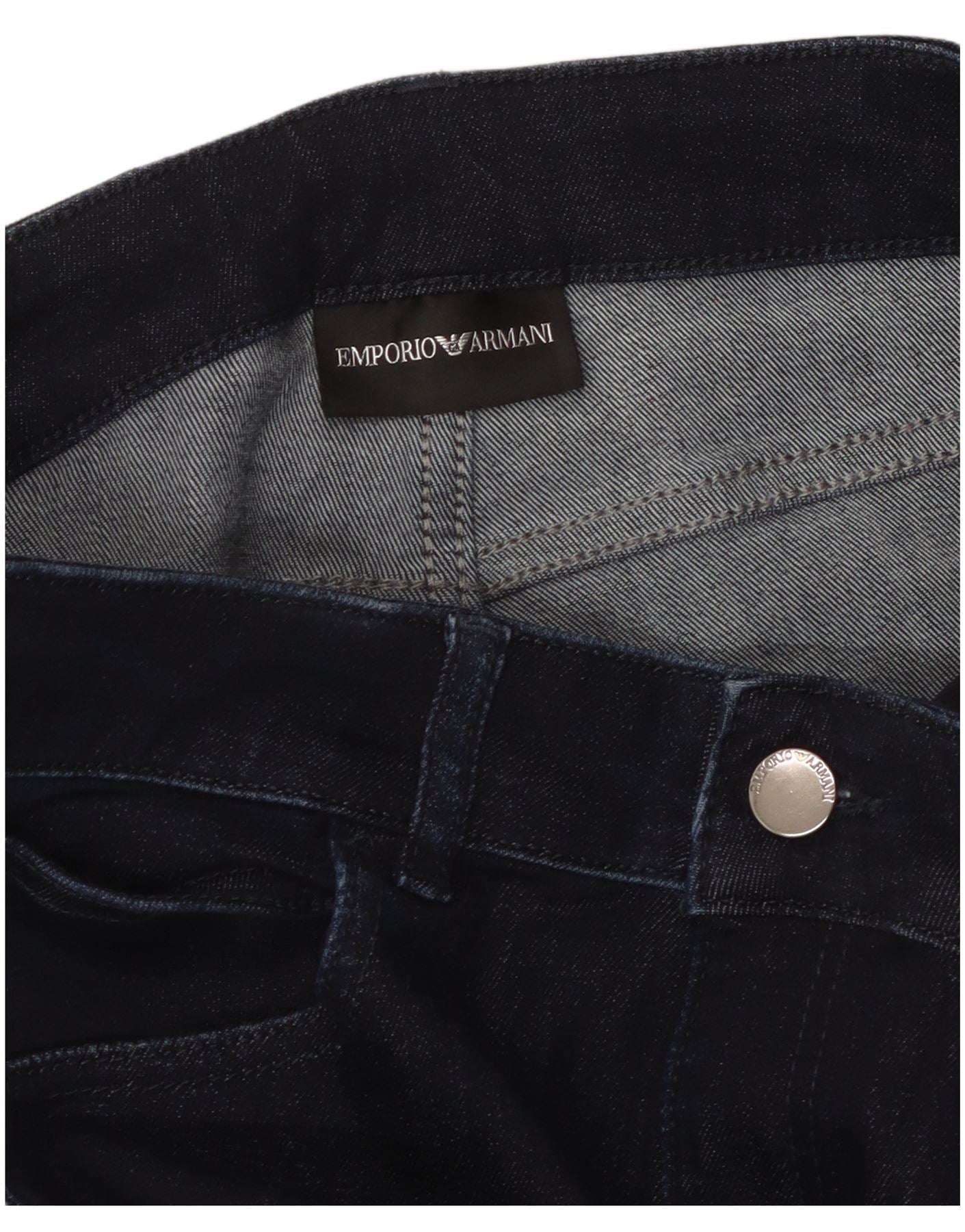 - AI beskrivelse: Disse Emporio Armani damejeans er lavet af rig marineblå denim. De har en normal pasform med en sikker lynlåslukning. Benene er designet med en klassisk flare, der udvider sig elegant fra knæet for en tidløs silhuet. Funktionelle lommer tilbyder praktiske funktioner. Der er en subtil logoaccent, som tilføjer et strejf af designergenkendelse til dette stilfulde par.