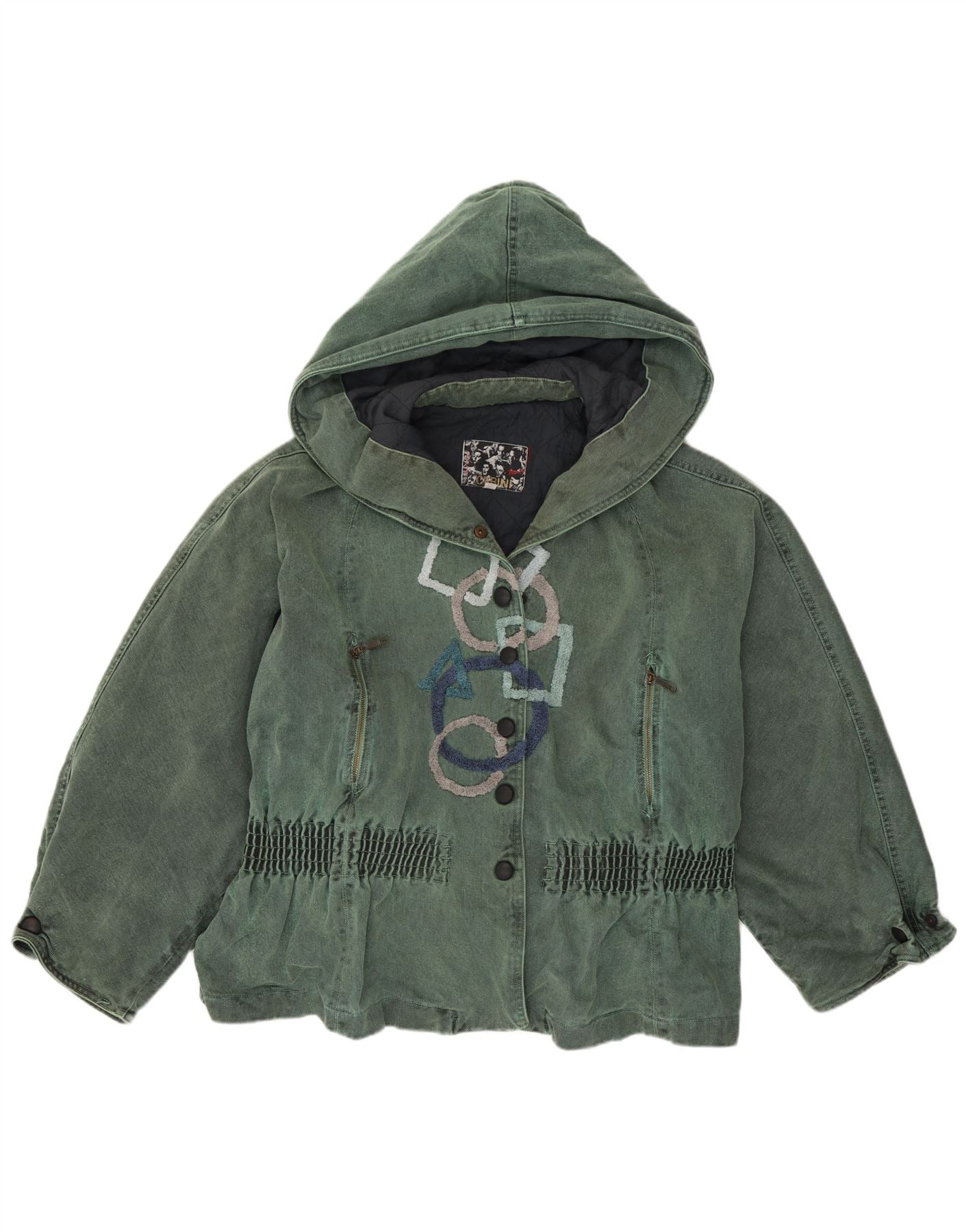 - AI beskrivelse: Denne Cerini fløjlsjakke til kvinder præsenteres i en rig grøn nuance, lavet af tekstureret fløjlsstof. Den har et praktisk hættedesign og en høj hals. Forsiden viser en unik broderet grafik og en knaplukning. Lange ærmer og en afslappet pasform sikrer komfort. En foldet talje tilføjer subtil formning, suppleret med funktionelle lommer og et blødt for.