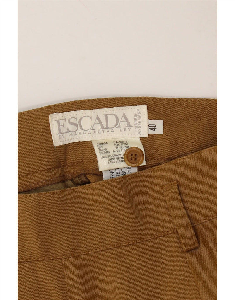 - AI Description: These Escada women's classic shorts are crafted from woven pure new wool in a versatile brown hue. The regular fit and button closure offer a timeless silhouette. Features include practical pockets and an adjustable waist for comfort. The design is clean and unfussy, made in West Germany.