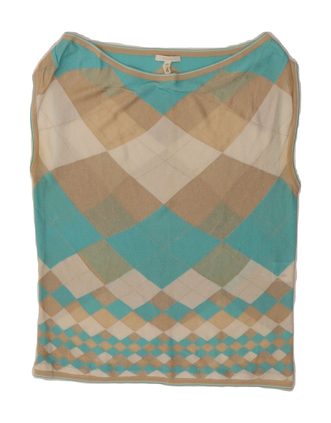 ESCADA Womens Vest Tank Top EU 40 Medium Turquoise Argyle/Diamond Rayon