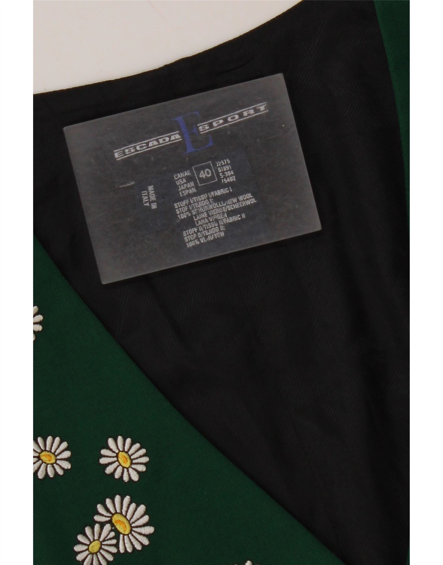 ESCADA Damevest EU 40 Medium Grøn Blomster Ny Uld