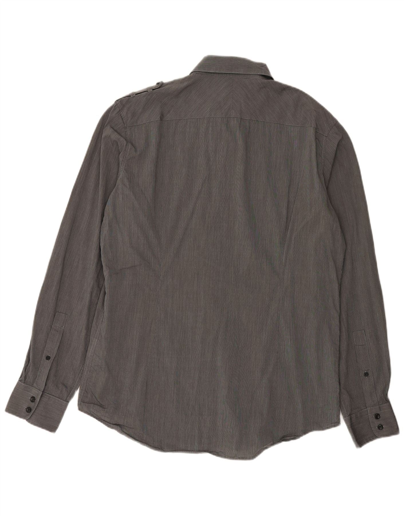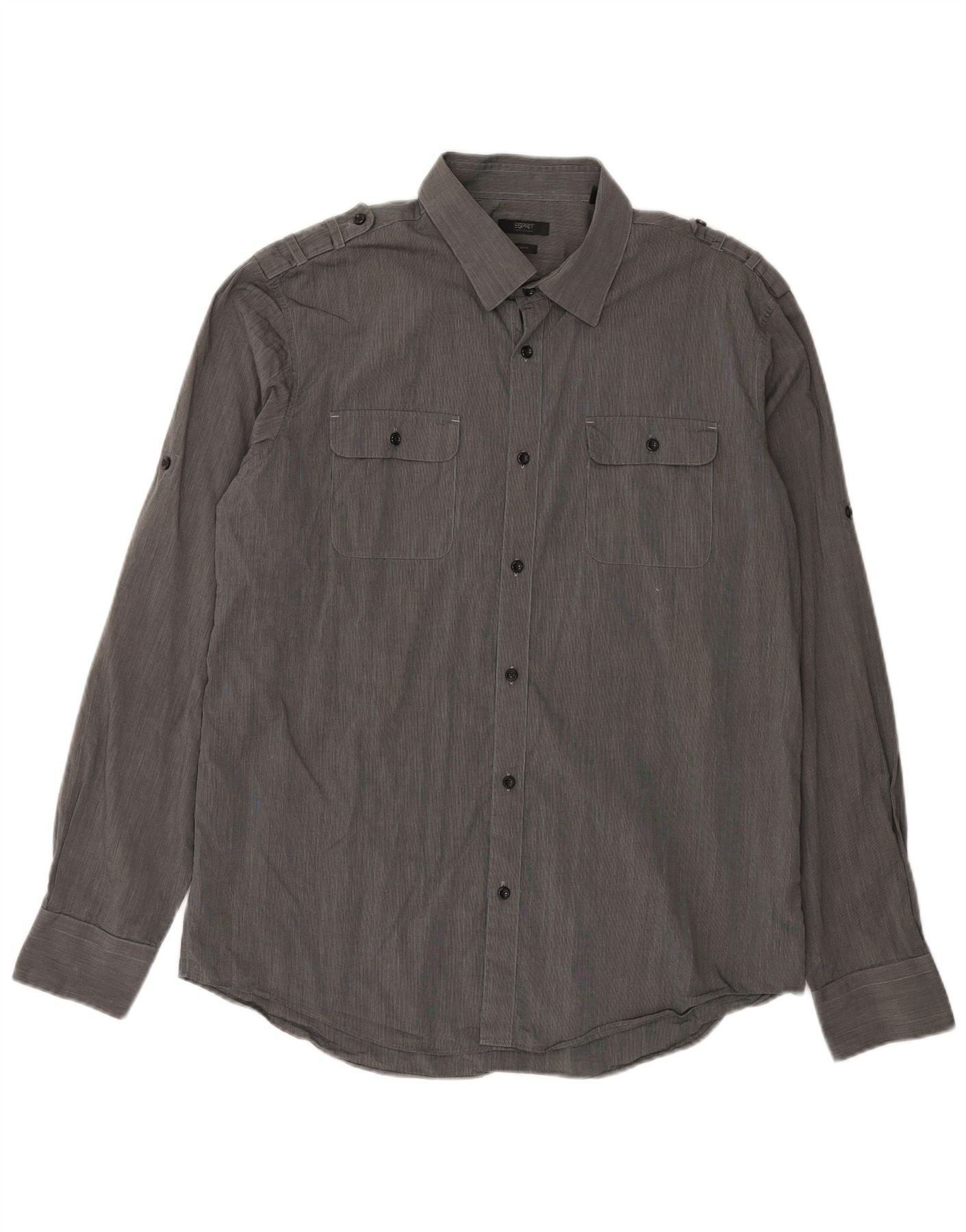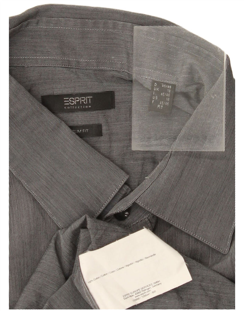 ESPRIT Mens Slim Fit Military Shirt Size 18 2XL Grey Pinstripe Cotton