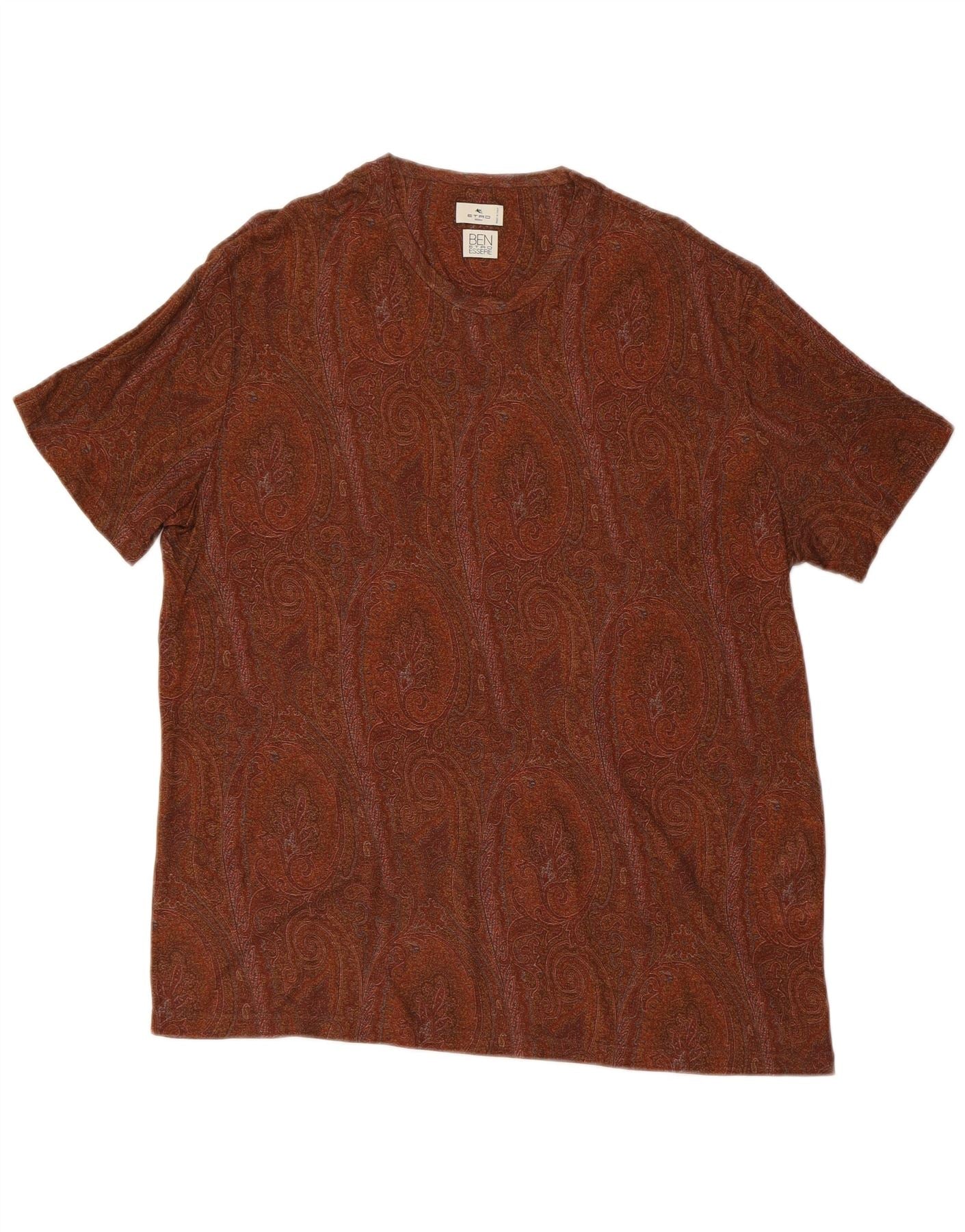 ETRO Mens T-Shirt Top Large Brown Paisley Lyocell