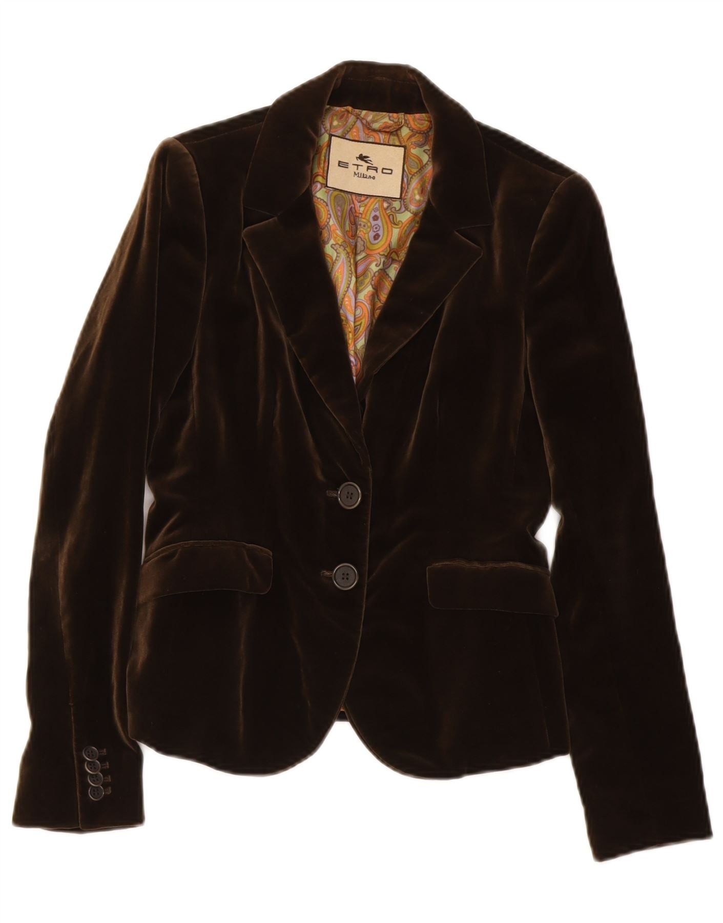ETRO Womens Velvet 2 Button Blazer Jacket IT 38 XS Brown Cotton