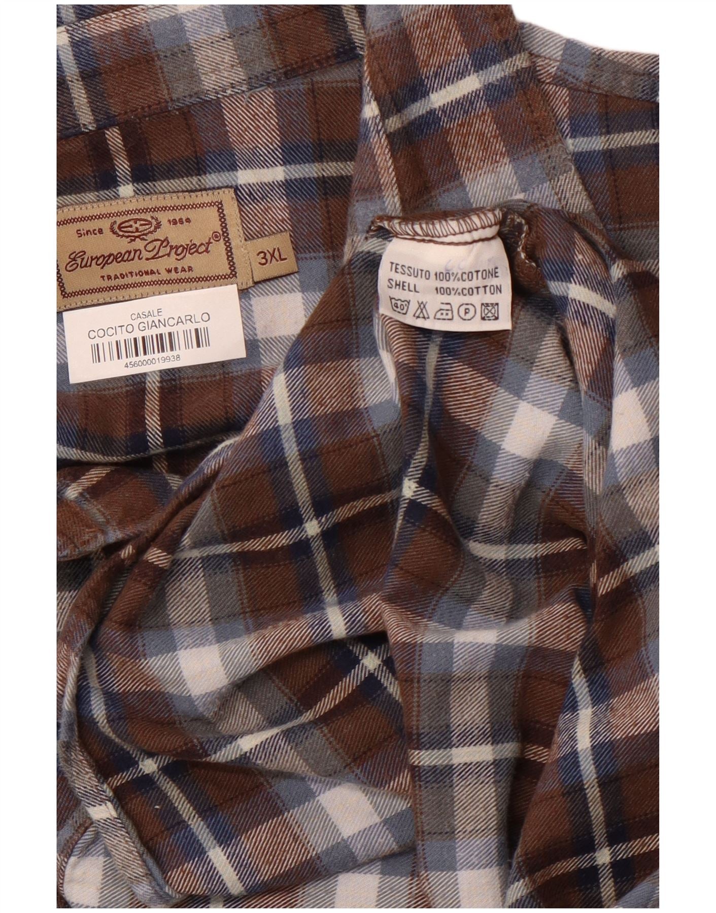 EUROPÆISK PROJEKT Herre Flanelskjorte 3XL brun ternet bomuld