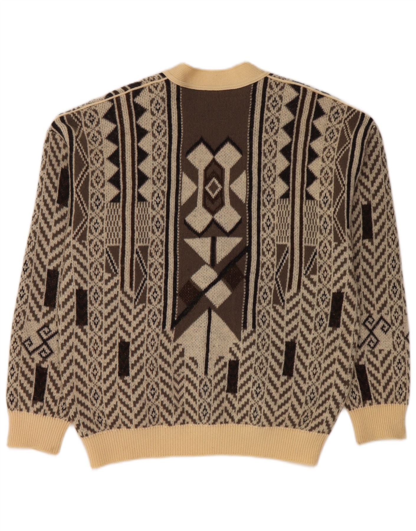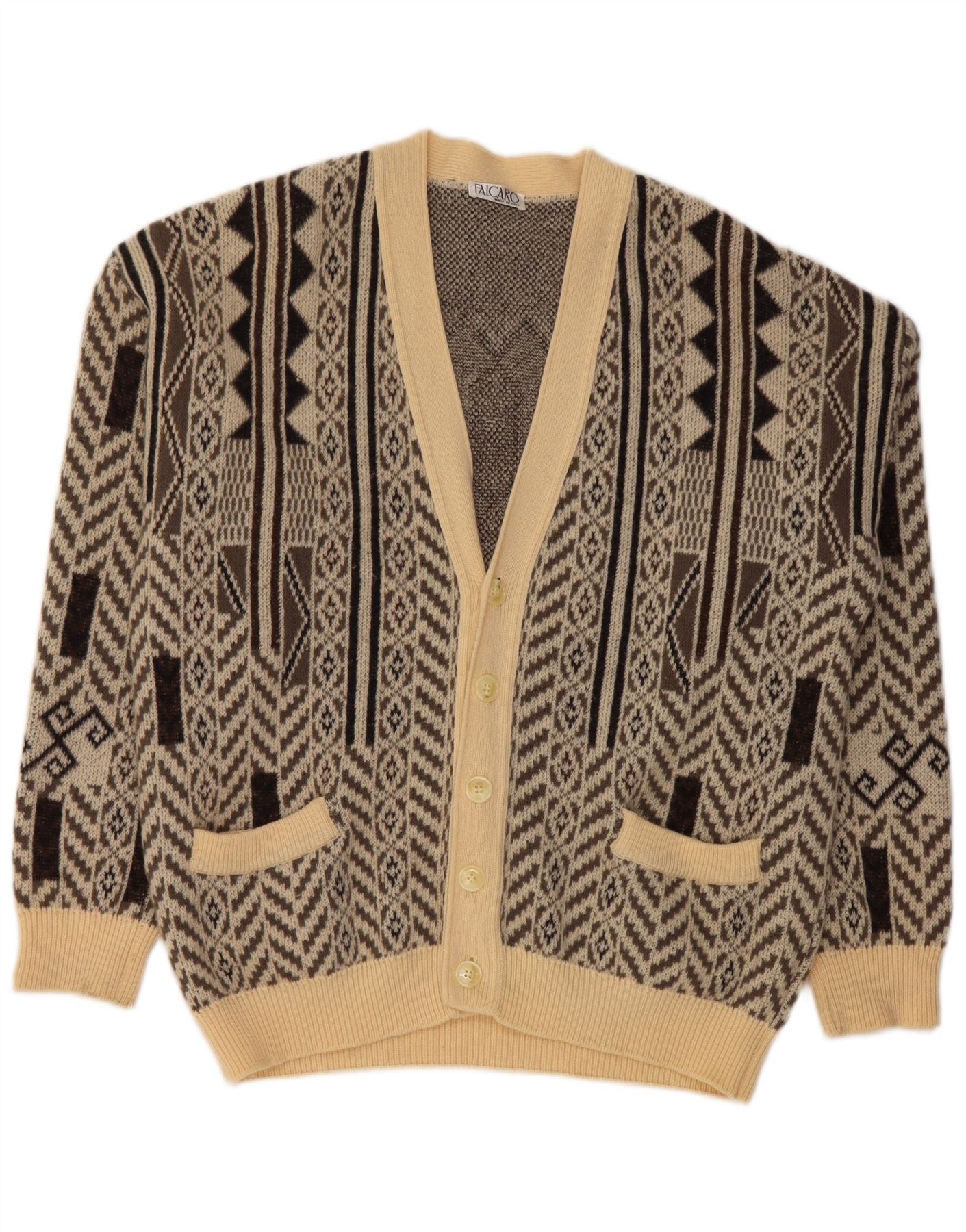 FALCARO Herre Cardigan Sweater IT 52 Stor Beige Geometrisk Uld