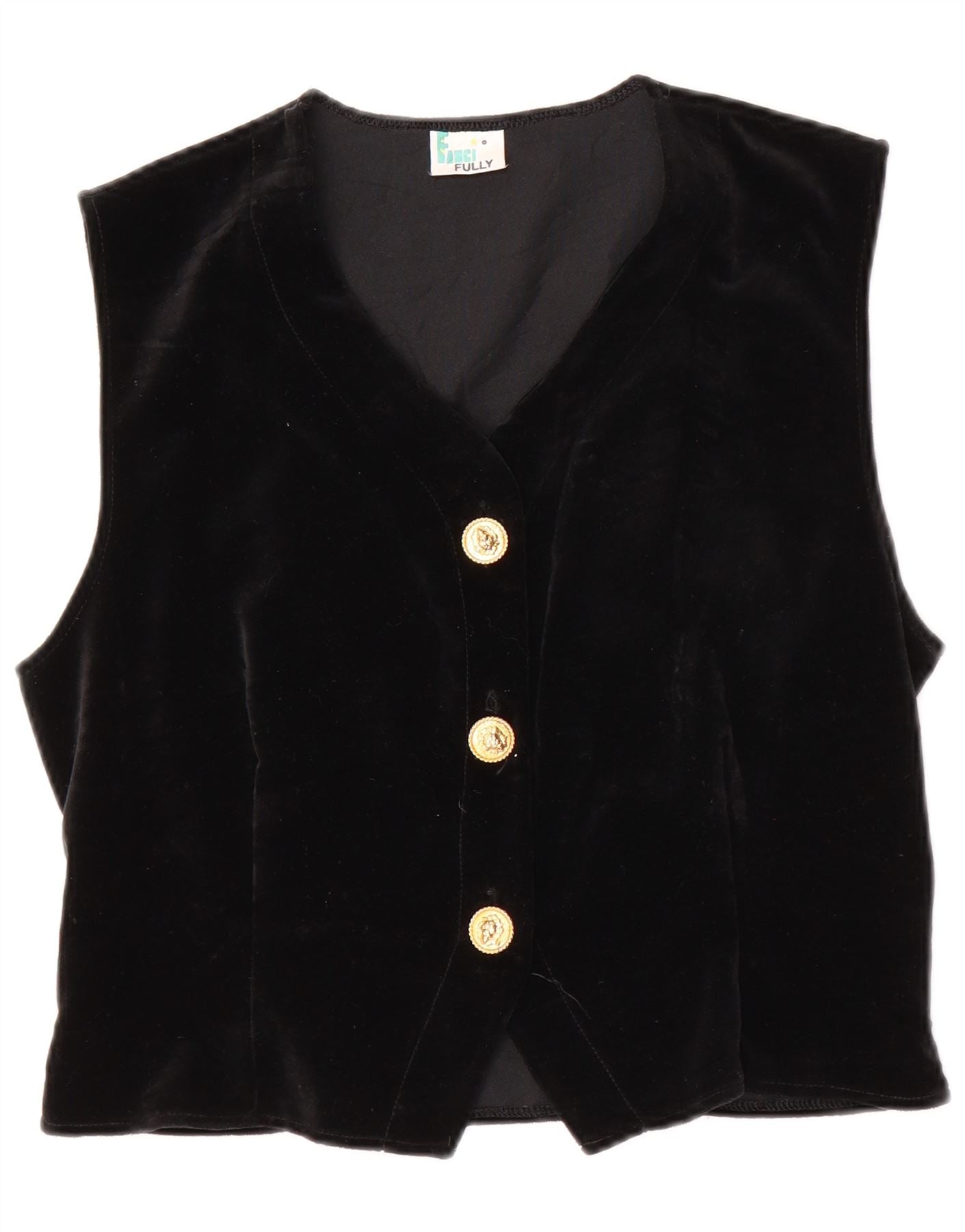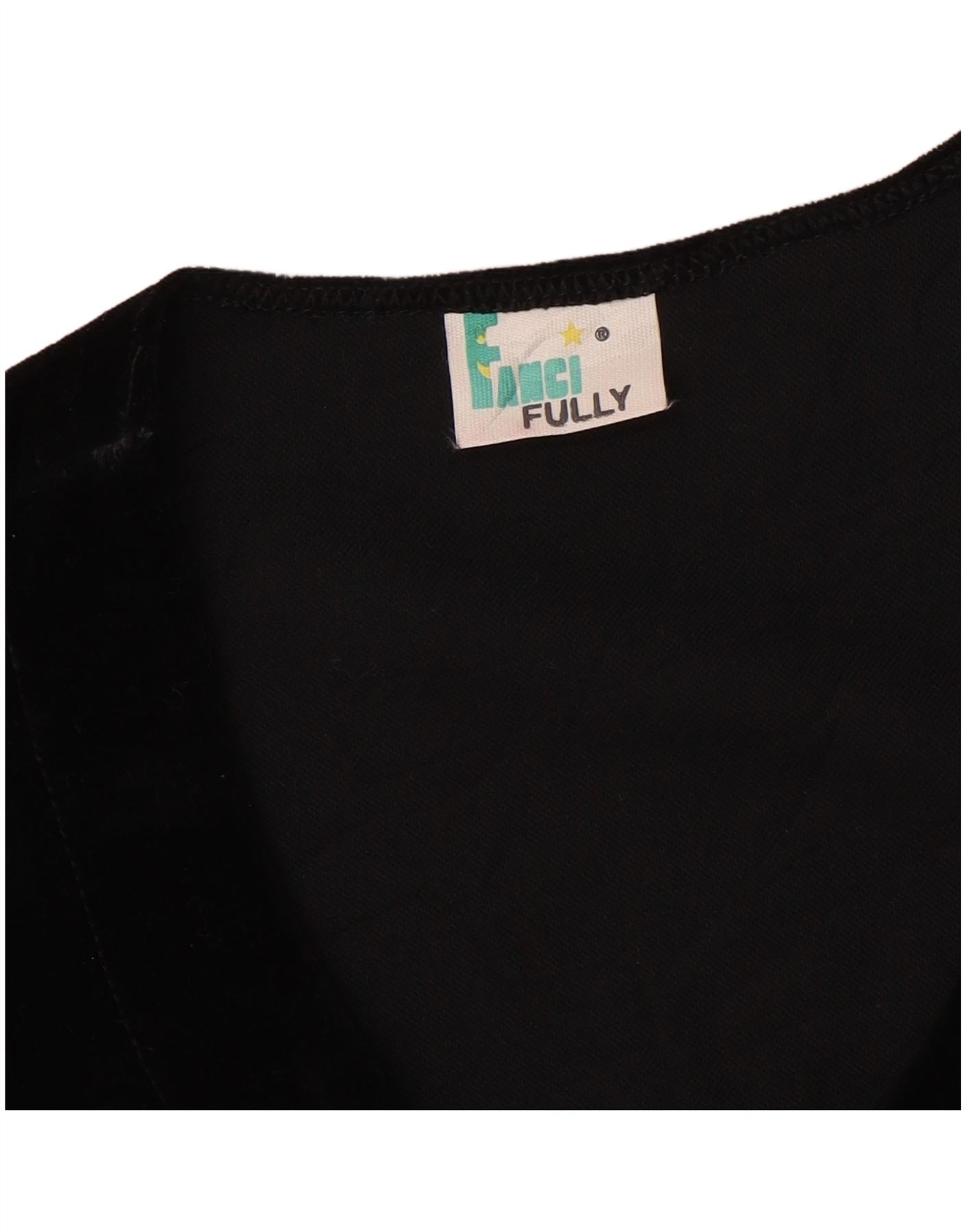 FANCY FULLY Womens Velvet Waistcoat UK 12 Medium Black Cotton