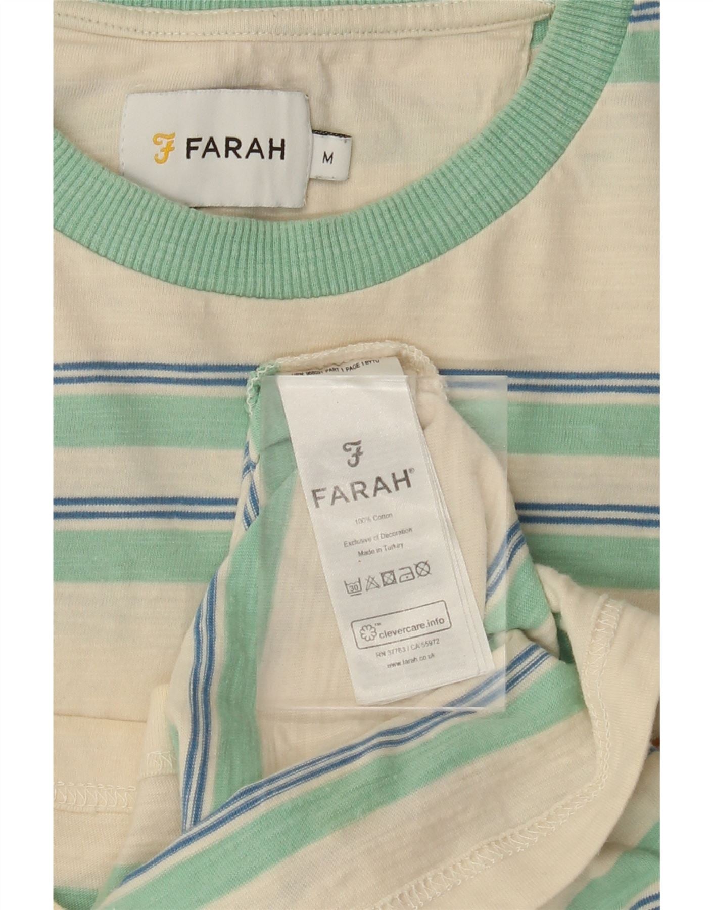 FARAH Herre T-shirt Top Medium Off White Stribet bomuld
