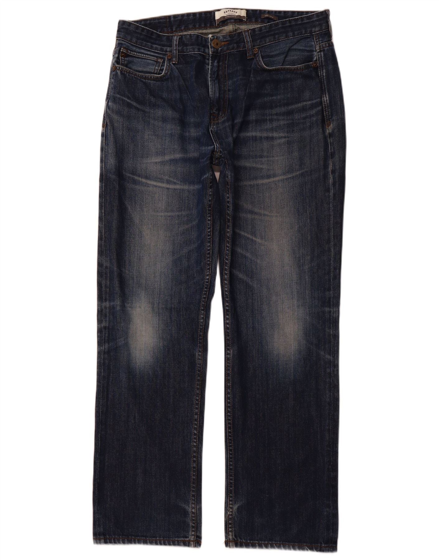 FAT FACE Herre Acid Wash Regular Fit Straight Jeans W36 L31 Blå Bomuld