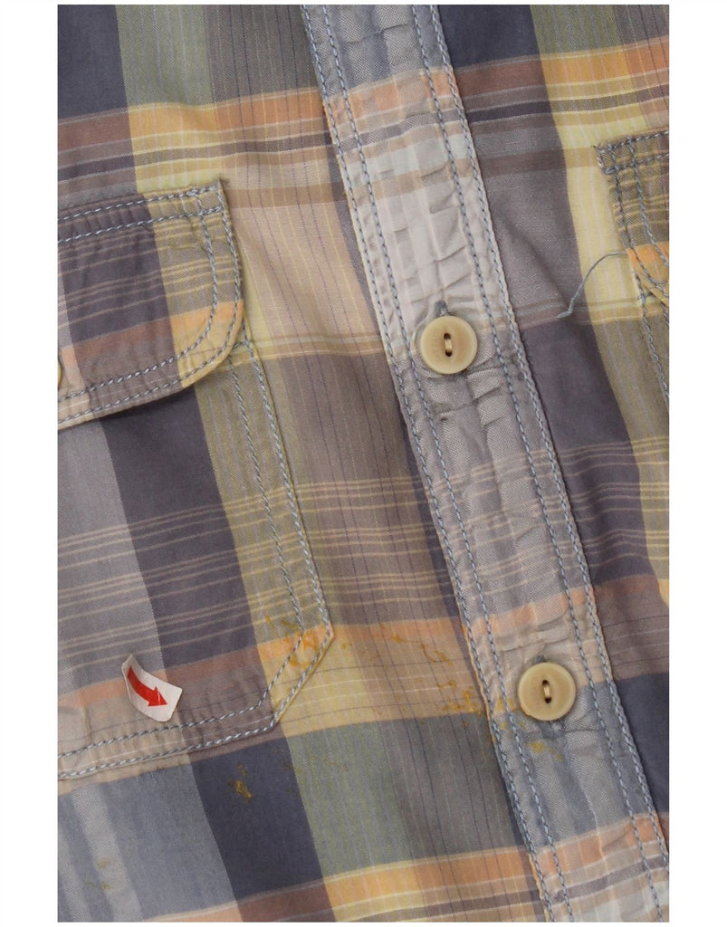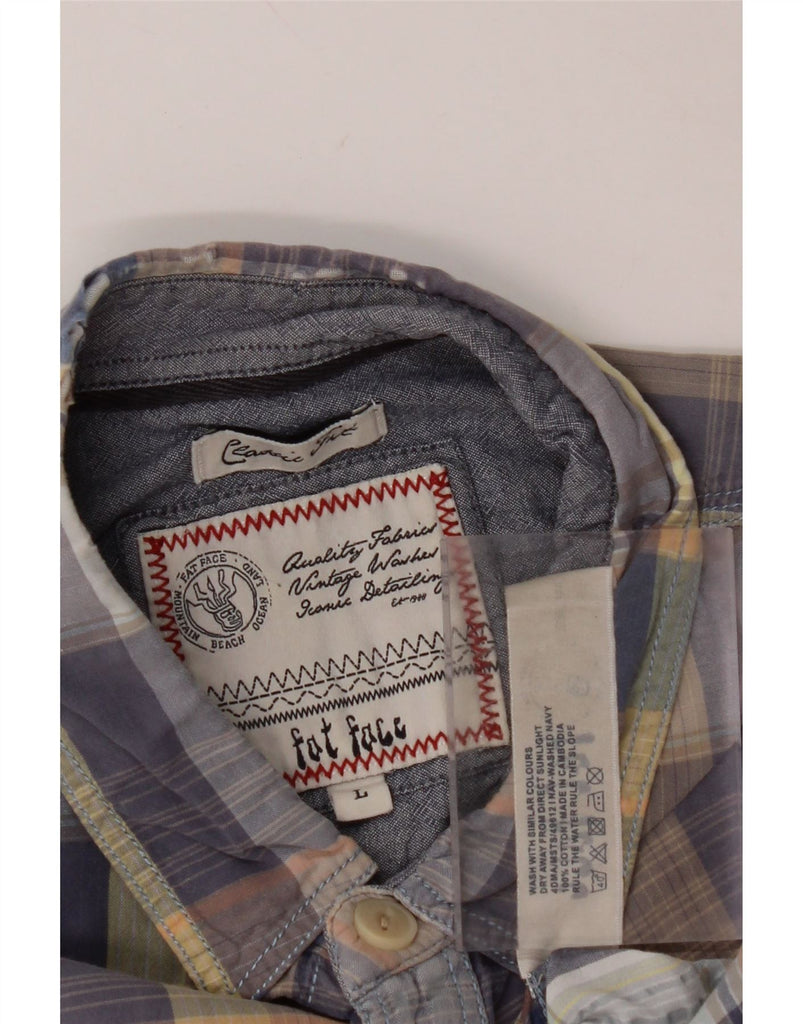 FAT FACE Mens Classic Fit Short Sleeve Shirt Large Blue Check Cotton