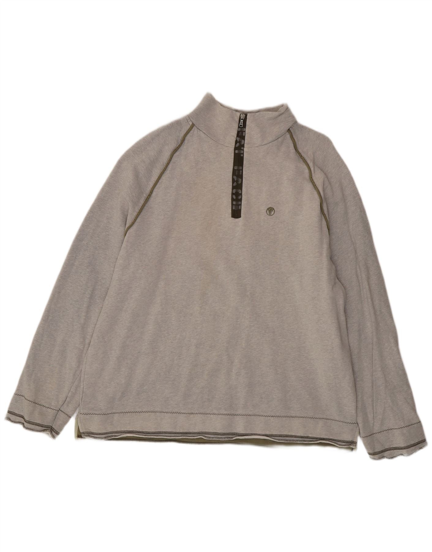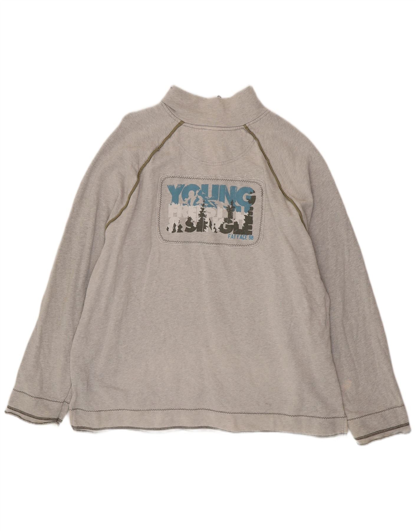 FAT FACE Herre Grafisk Zip Neck Sweatshirt Jumper XL Grå Bomuld