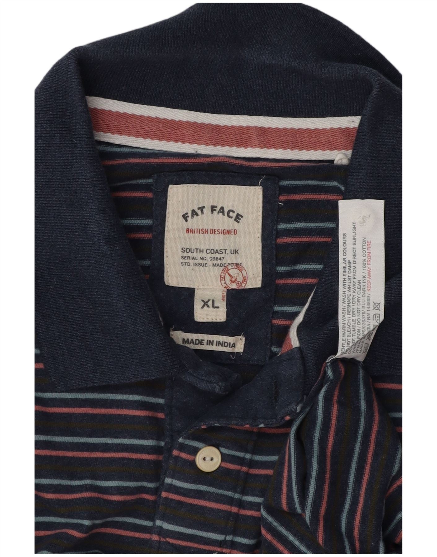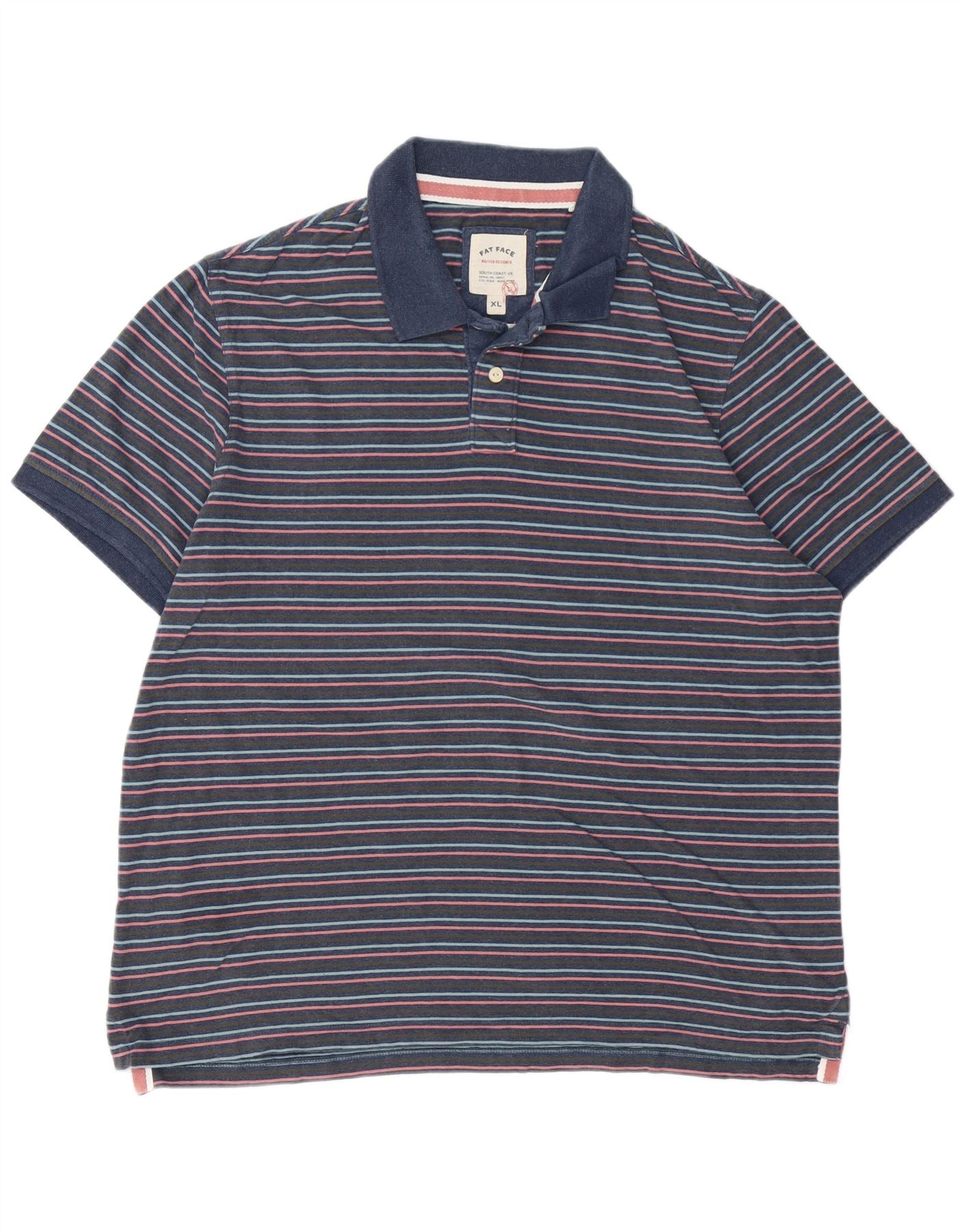 FAT FACE Poloshirt til mænd XL Navyblå stribet bomuld