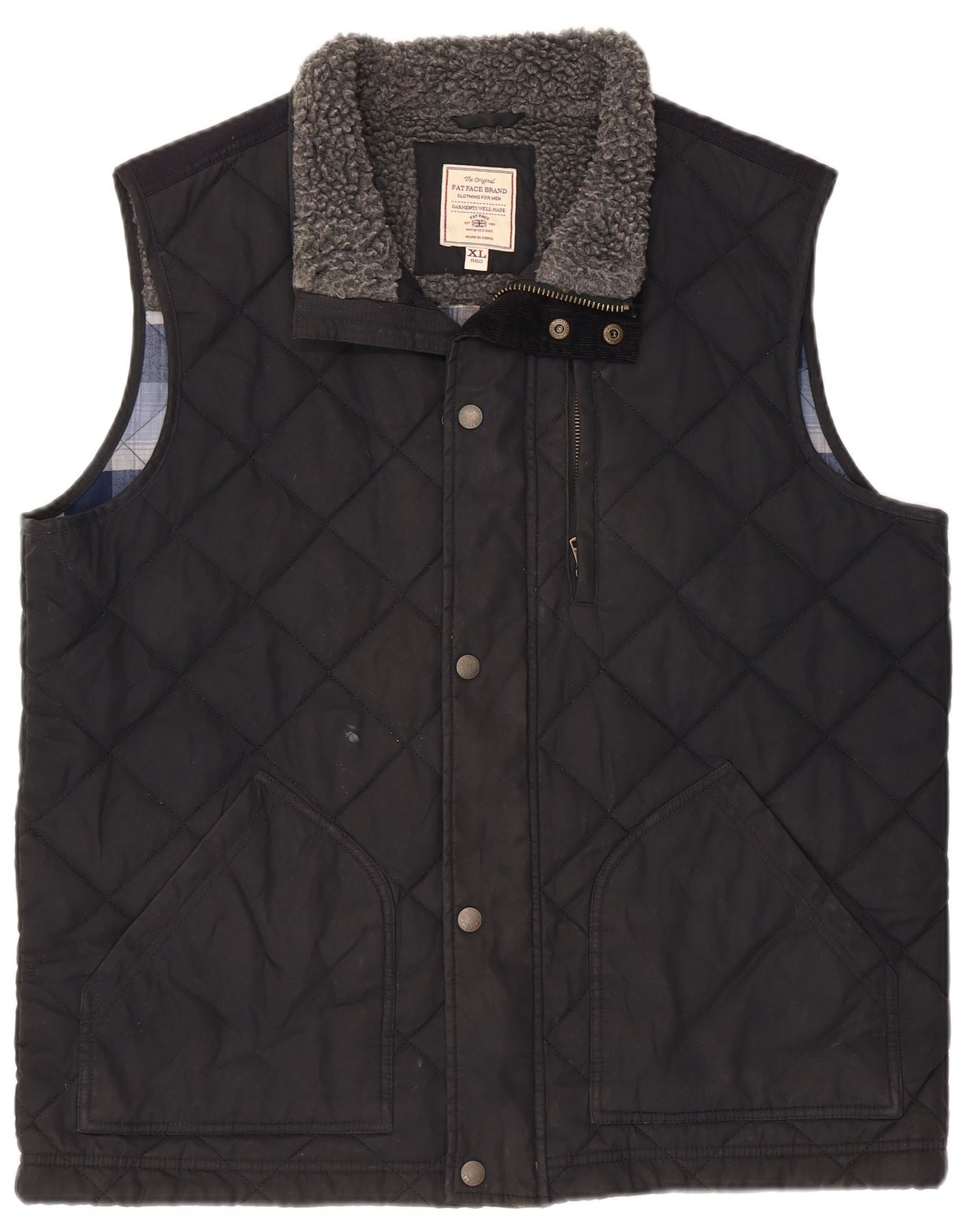 - AI beskrivelse: Denne herrevest med Fat Face er lavet af et sort quiltet vævet stof med en hyggelig fleece-foret krave. Den har en normal pasform og et ærmeløst design. Kraveudskæringen tilføjer et klassisk touch. Det quiltede mønster giver varme og stil. En frontlukning med fem knapper sikrer tøjet. Praktiske lommer tilbyder funktionalitet. Den er fuldt foret og polstret for komfort, hvilket gør den ideel til vinterlag.
